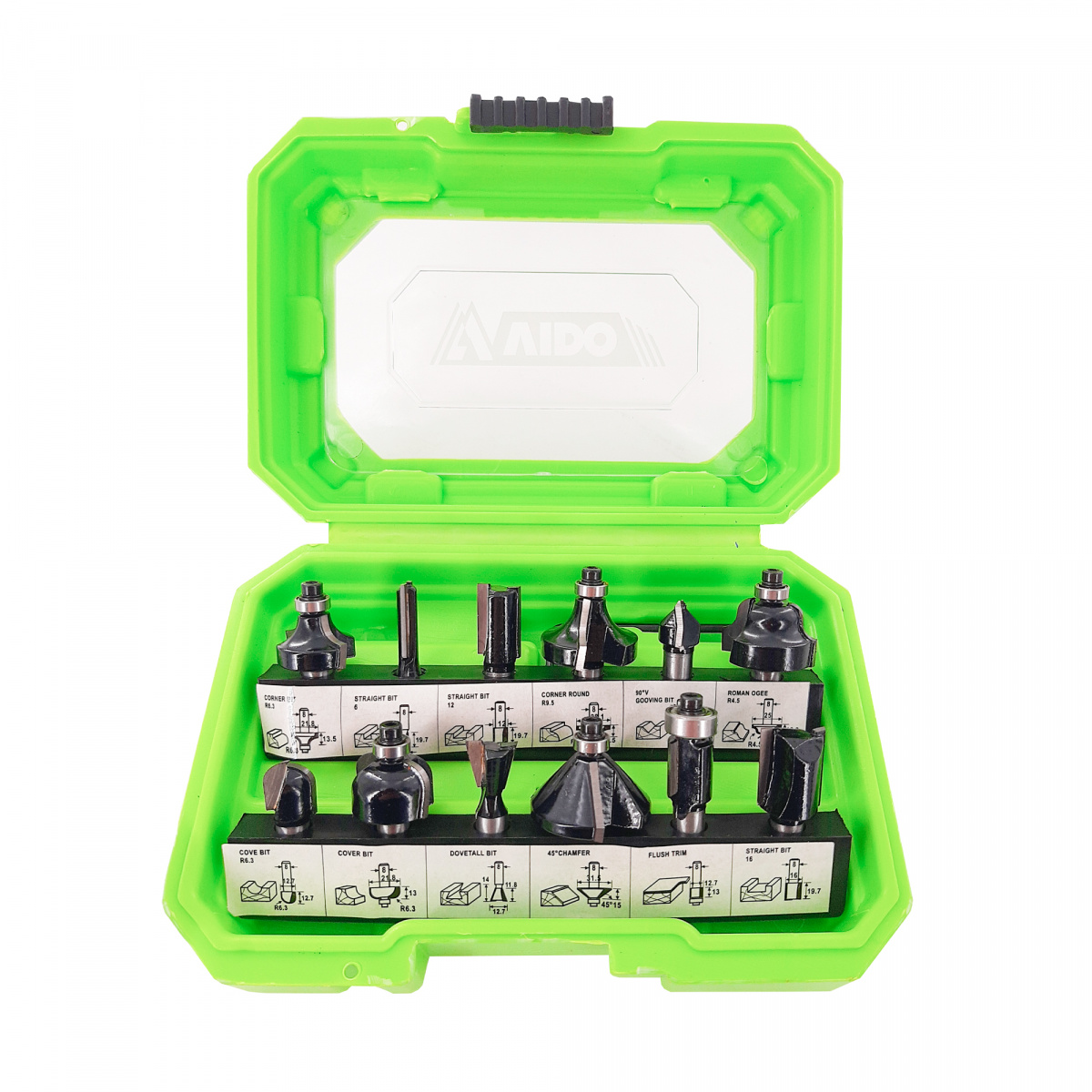 300.004 Набор фрез Vido 12шт. DELTA TOOLS пазовые, обгонные, галтель, калевка, ласточкин хв. S=8