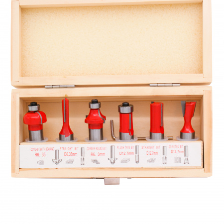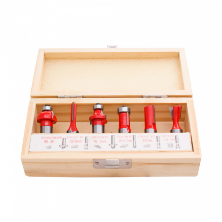 300.009 Набор фрез 6шт. DELTA TOOLS пазовые, обгонные, галтель, калевка, ласточкин хв. S=12 применяется для выполнения различных видов фрезерных работ, таких как создание пазов, вырезание отверстий, контурная обработка и других операций.