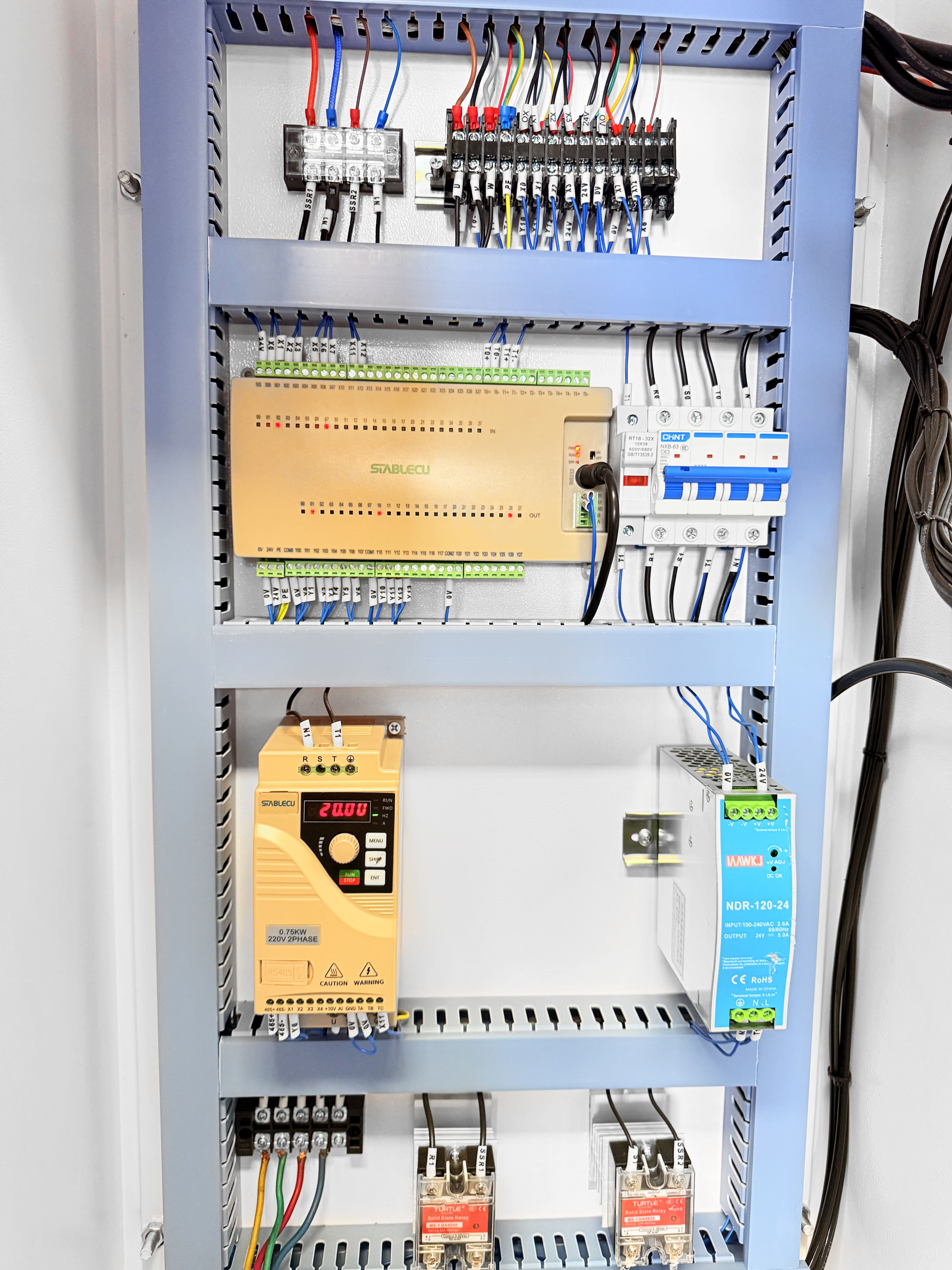 Для сборки электрошкафа станка применяются только качественные компоненты. Для каждого исполнительного узла используется собственный инвертор.