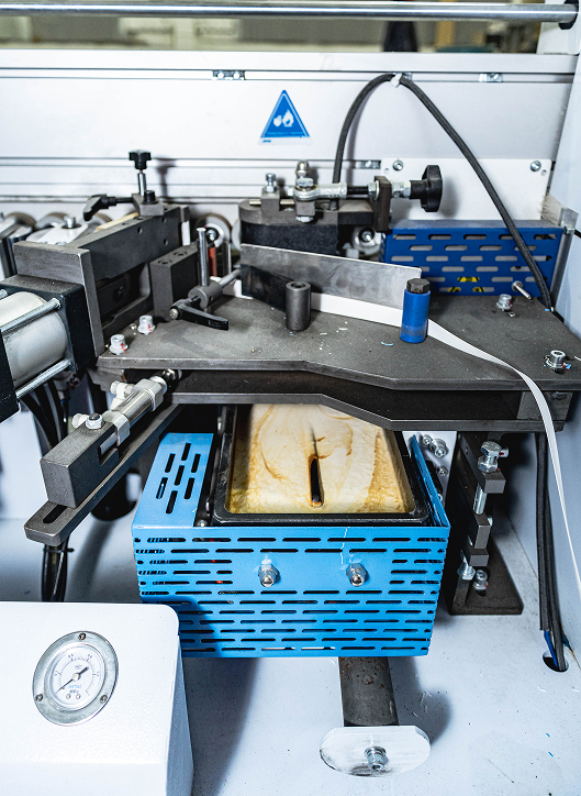 Предназначен для облицовывания прямолинейных кромок плитных материалов рулонными кромками АБС, ПВХ и полосовым кромочным материалом.