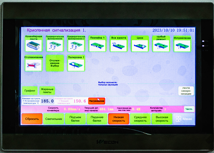 Информативная и простая в использовании панель управления позволяет контролировать процессы обработки каждого узла станка. Система оснащена меню подсказок, сигнализирующем о неисправностях в случае их возникновения. Корпус панели управления выполнен поворотным для удобства работы оператора.