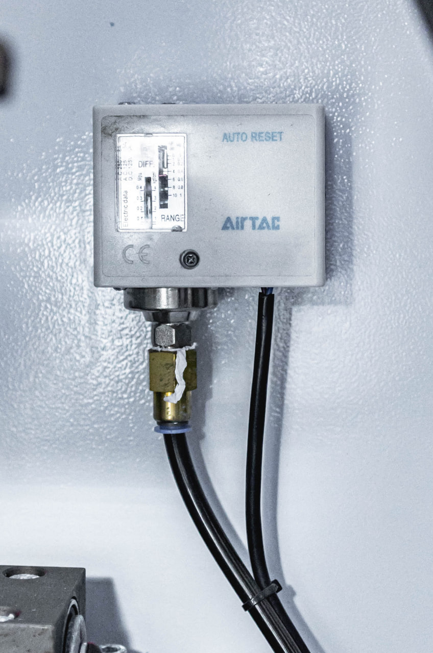 Прижимной пневматически управляемый узел состоит из одного основного и пяти допрессовочных роликов. Ролики оснащены механизмом очистки