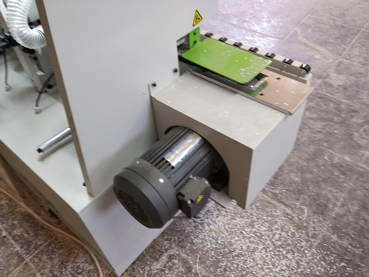 Два промышленных двигателя 2x0,35кВт Пилы перемещаются по одной призматической направляющей, где каждая пила отрезает припуск только с одной стороны. Данная система зарекомендовала себя, как надежная и стабильная, в течение всего срока эксплуатации.