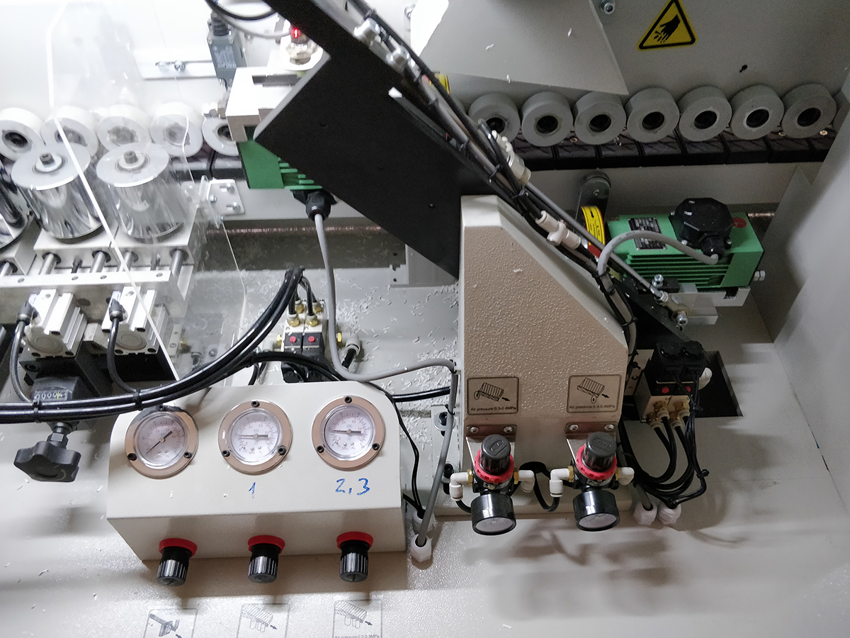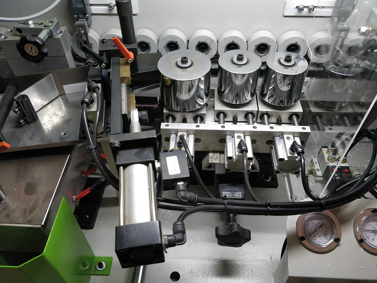 Если регулировка пресс группы осуществляется механически с помощью пружины, то одного усилия на пресс валах добиться не удастся, что приводит к частичному отклеиванию кромки.