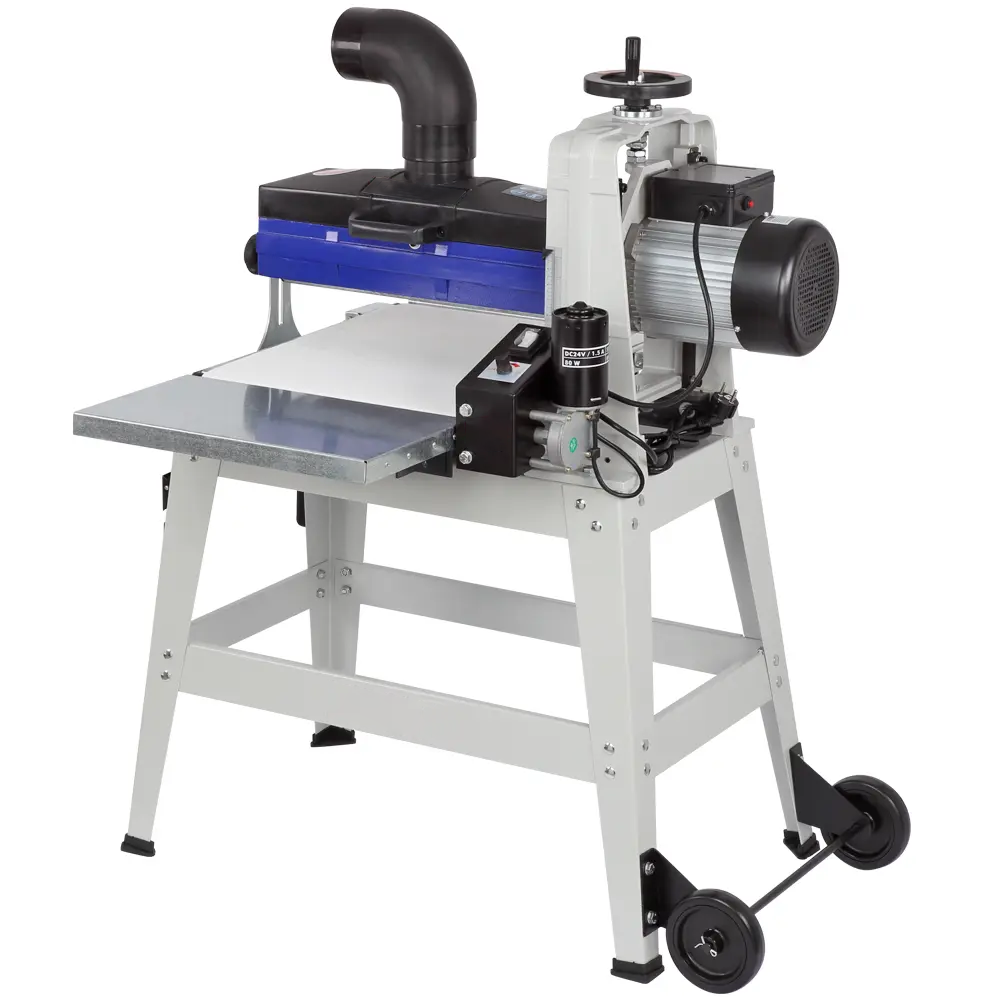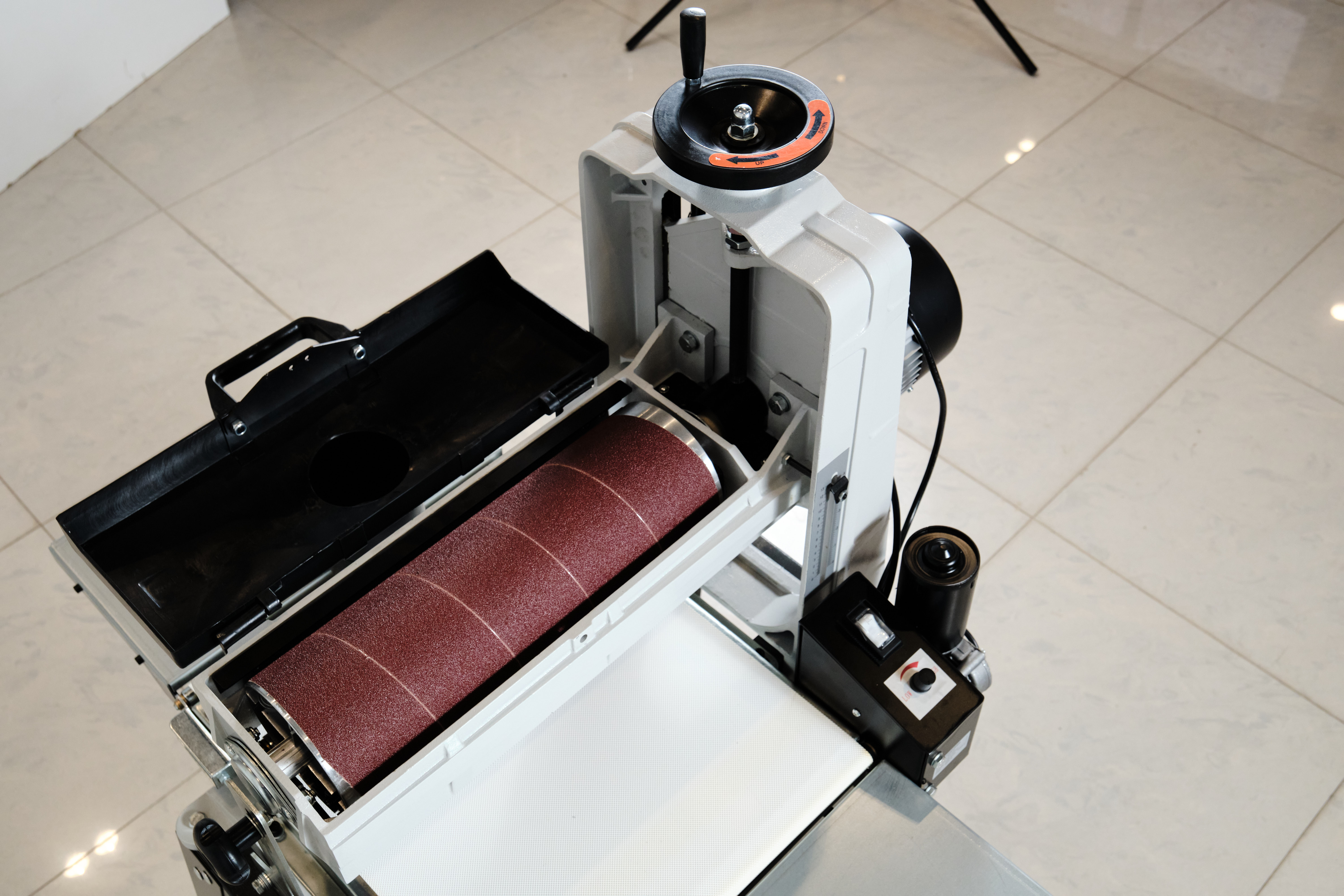 Шлифовальный барабан имеет консольное расположение. При необходимости обработки более широких заготовок можно снять левую стойку и в два прохода обрабатывать детали шириной до 800 мм.