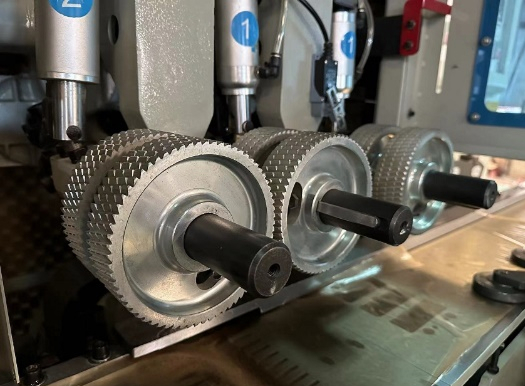 Независимая пневматическая регулировка трех групп подающих роликов позволяет настроить усилие прижима. Это необходимо для обеспечения надежной и плавной подачи материала по ходу всей обработки.