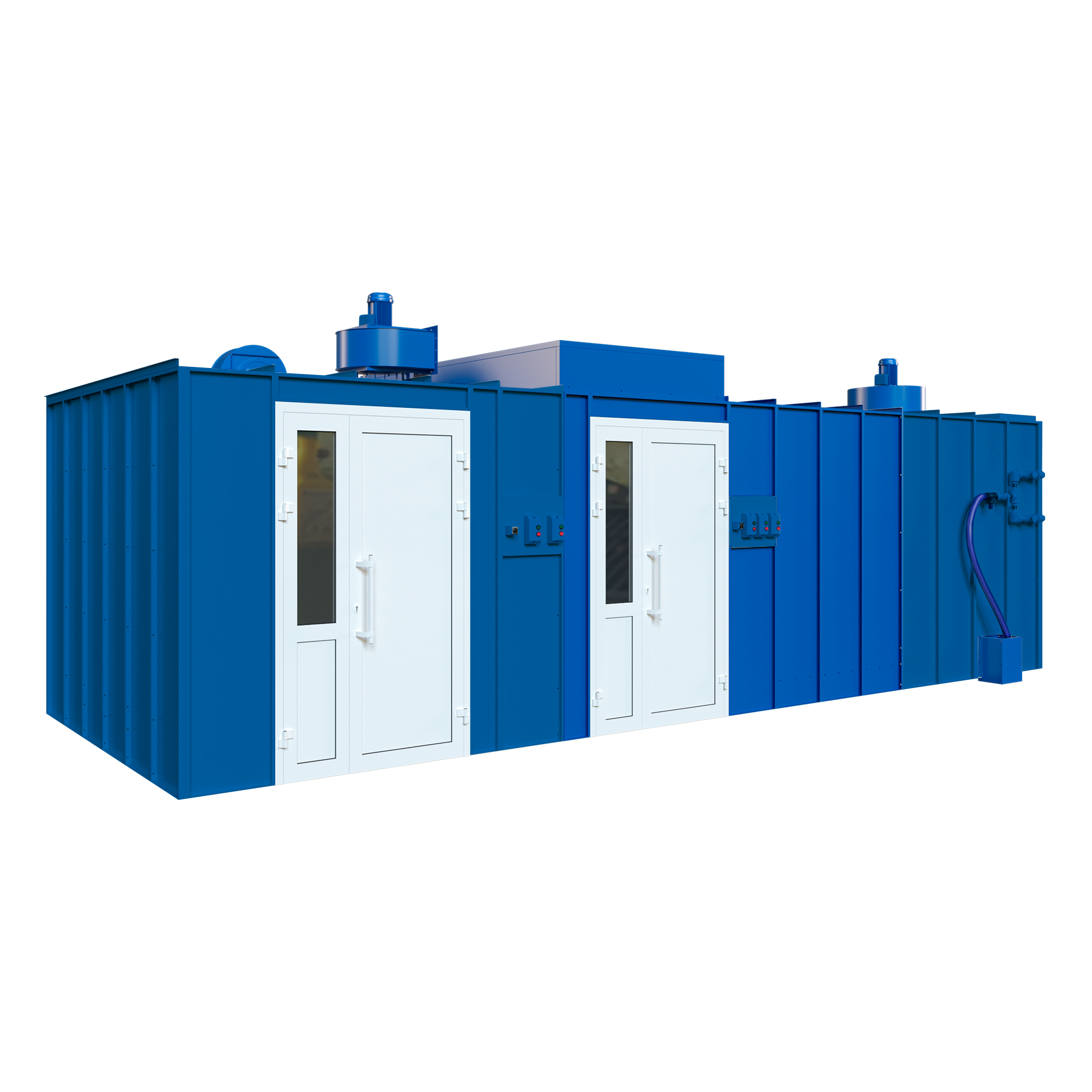 «Чистая комната» с сушильной зоной конструктивно представляет собой герметичную камеру, в которой осуществляется обработка поверхностей под воздействием высокого давления. Приточный воздух проходит через систему предварительной и второстепенной фильтрации.