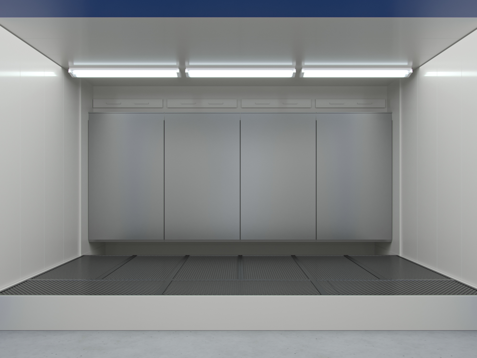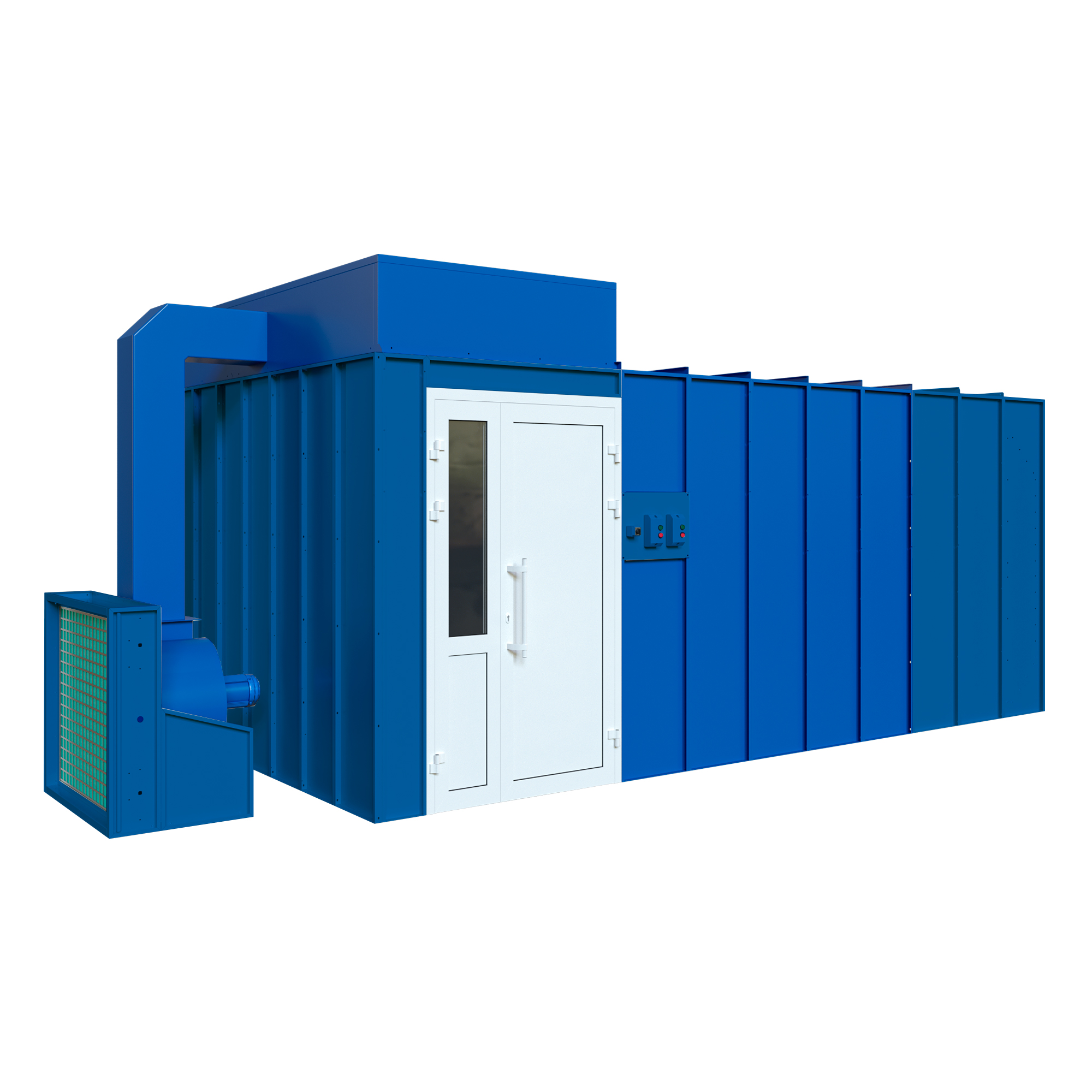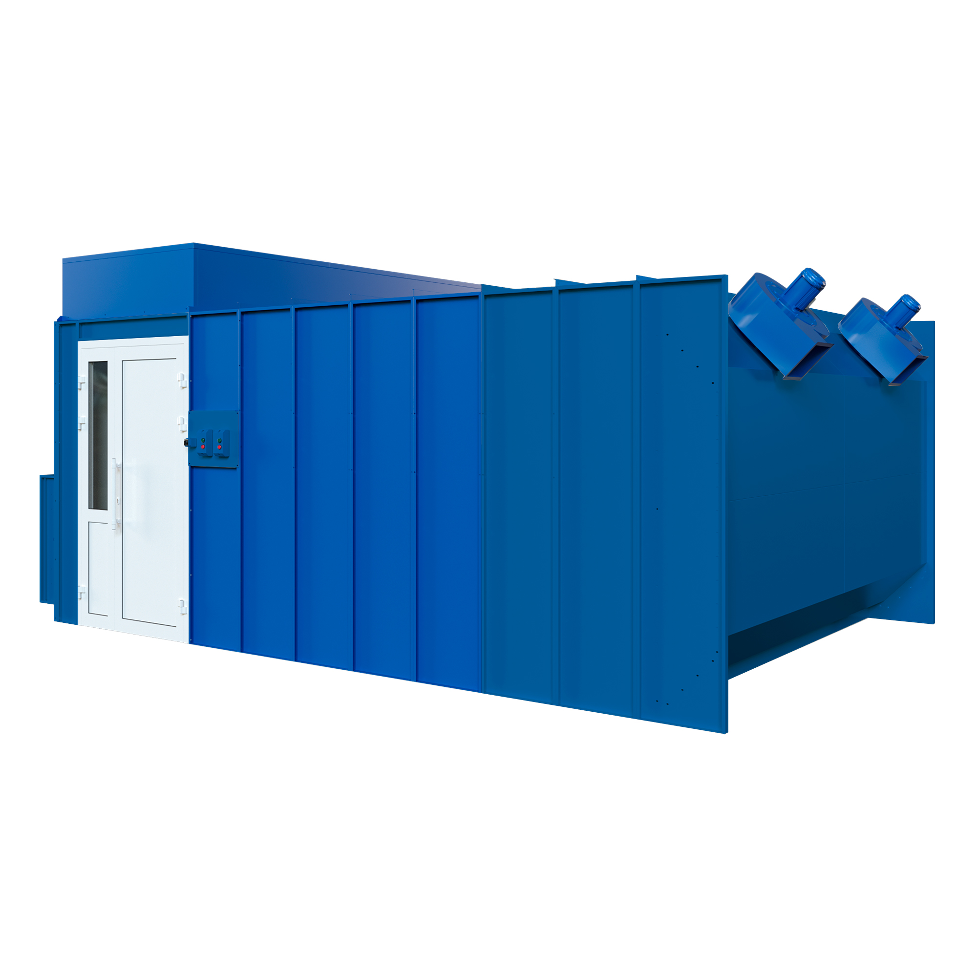 Покрасочная камера представляет собой кабину (комнату) с водяной завесой, активным водяным полом и потолочным фильтром приточной вентиляции, оборудованным фильтром. Последний обеспечивает грубую очистку воздушного потока, подаваемого в приточную зону.