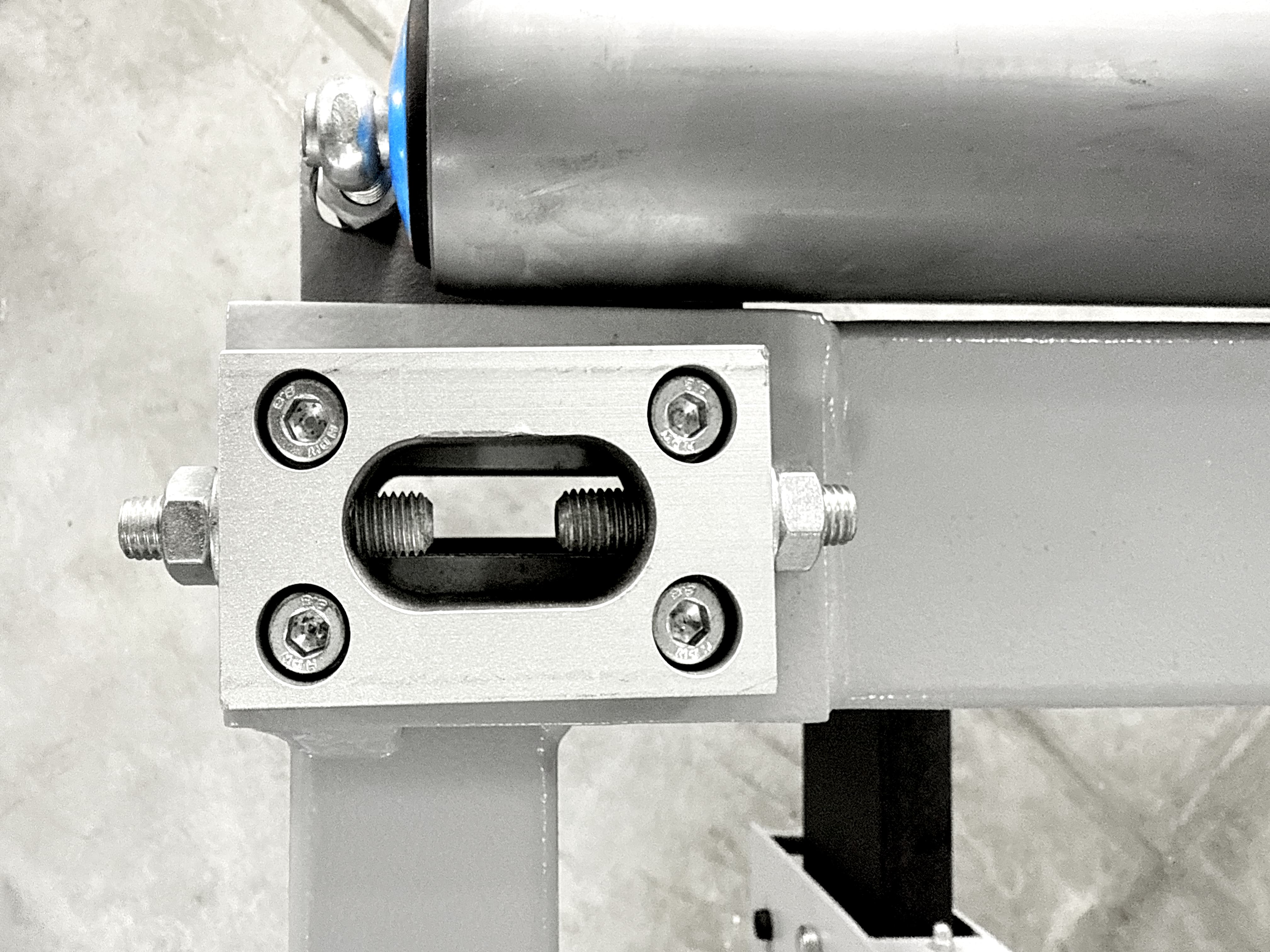 Перемещение перекидного упора осуществляется с помощью линейного подшипника на призматической направляющей, данная система крепления придает конструкции безупречную плавность хода, жесткость и как следствие отсутствие люфтов, что гарантированно обеспечивает точное позиционирование.