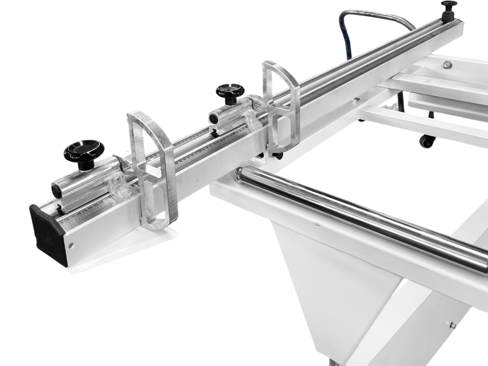 Усиленная конструкция салазок на каретке позволяет надежно базировать крупногабаритные детали, что обеспечивает точную геометрию распила. Телескопическая линейка имеет два флажковых упора для точного выставления размера. Удобные и хорошо читаемые показатели линейки.
