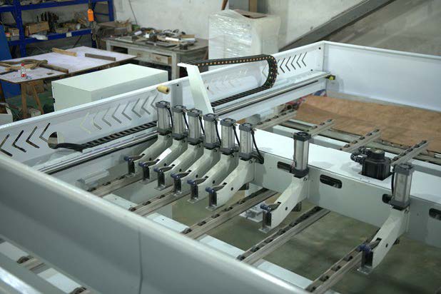 Специальная конструкция захватов не повреждает материал при его фиксации и перемещении. Конструкция захватов надежно фиксирует и деликатно перемещает материал в течение всего цикла раскроя.
