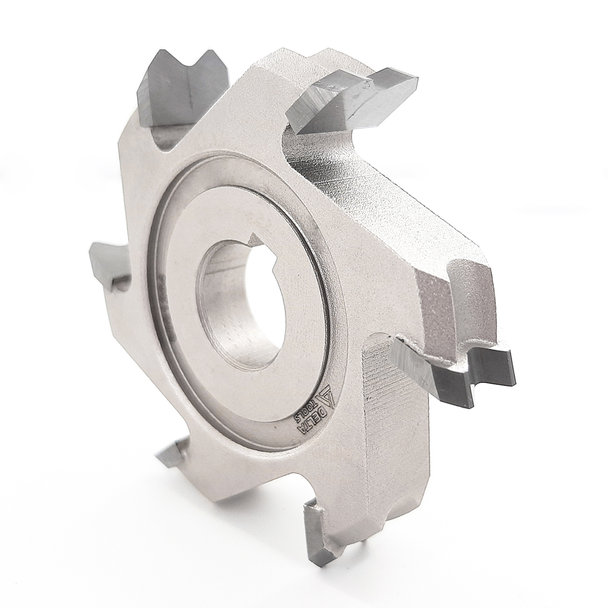 Фреза DELTA TOOLS 69x16x13 R1 Z6 FL для снятия свесов применяется для форматирования и фугования поверхности плитных заготовок на узлах предварительного фрезерования кромкооблицовочных станков.