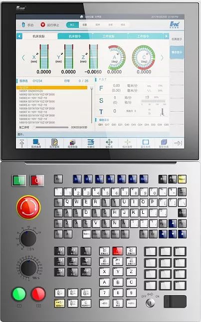 Стойка ЧПУ оснащается 17-дюймовым экраном с разрешением 1280*1024 в стандартной комплектации. Опционально устанавливается цветной сенсорный ЖК-монитор 17 дюймов. Панель выполнена из алюминиевого сплава. Для ввода команд и привязки горячих клавиш предназначена клавиатура MCP.