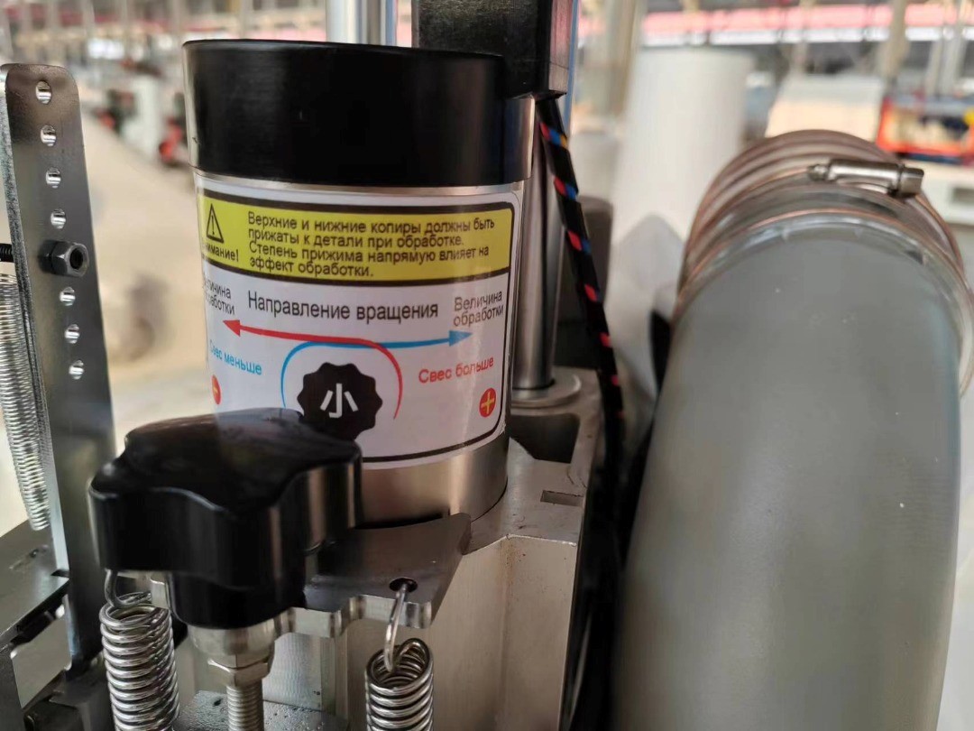 Активным копиром отслеживания детали по торцу с изменяемой скоростью и системой нанесения очистительной жидкости, что позволяет получить превосходный результат при обработке любых кромочных материалов