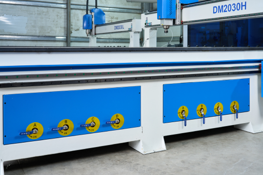 Комбинированный вакуумный стол с 8-ю разделяемыми зонами оснащен дополнительными Т слотами для возможности механического удерживания материалов.