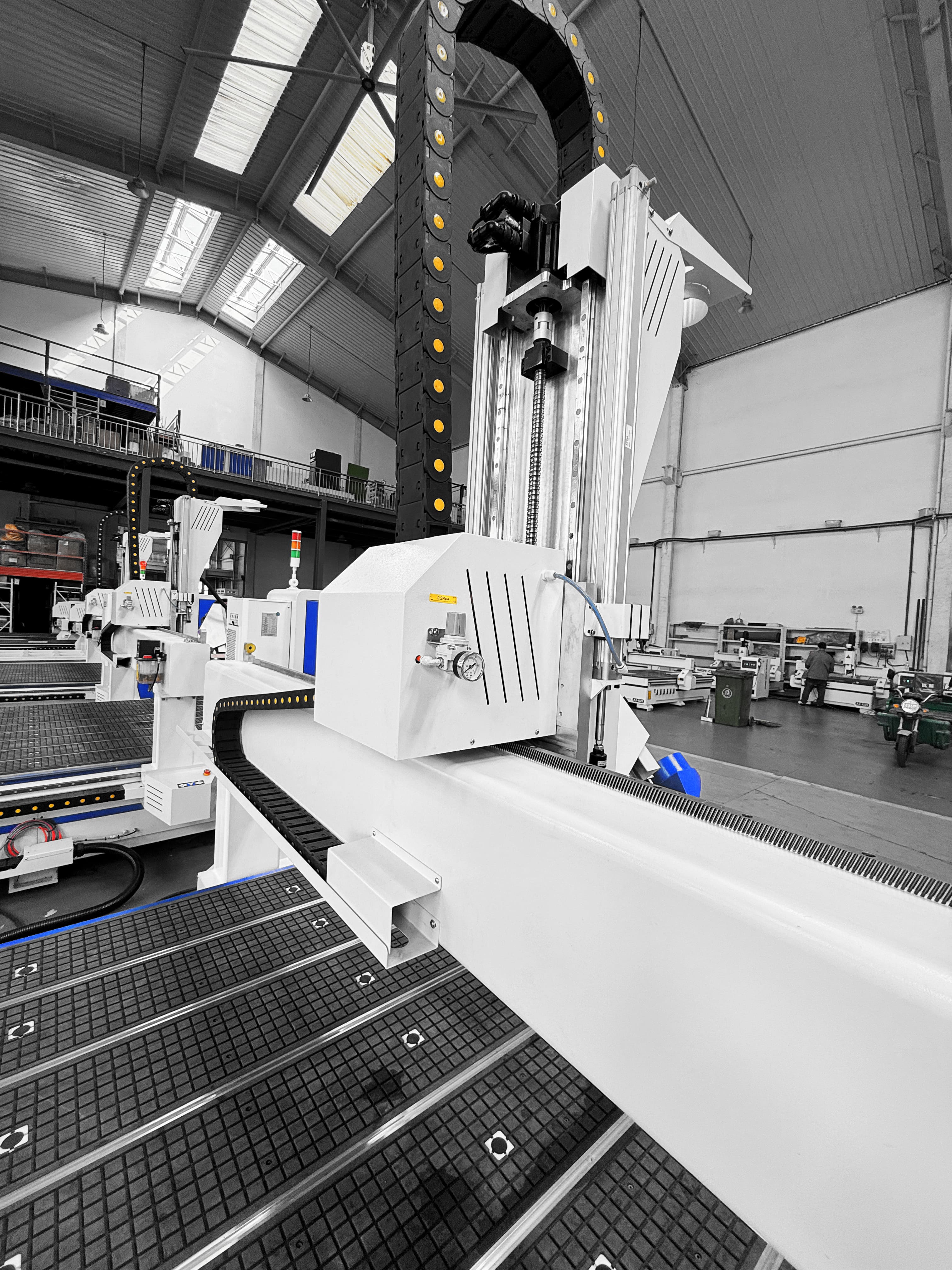 Серия станков X8 оснащена шпинделем с жидкостным охлаждением, имеющий 4-ю ось с ходом на 180° (влево/вправо + 90°), может использоваться для обработки изогнутых поверхностей, гнутых фасадов, моделей и т.п.