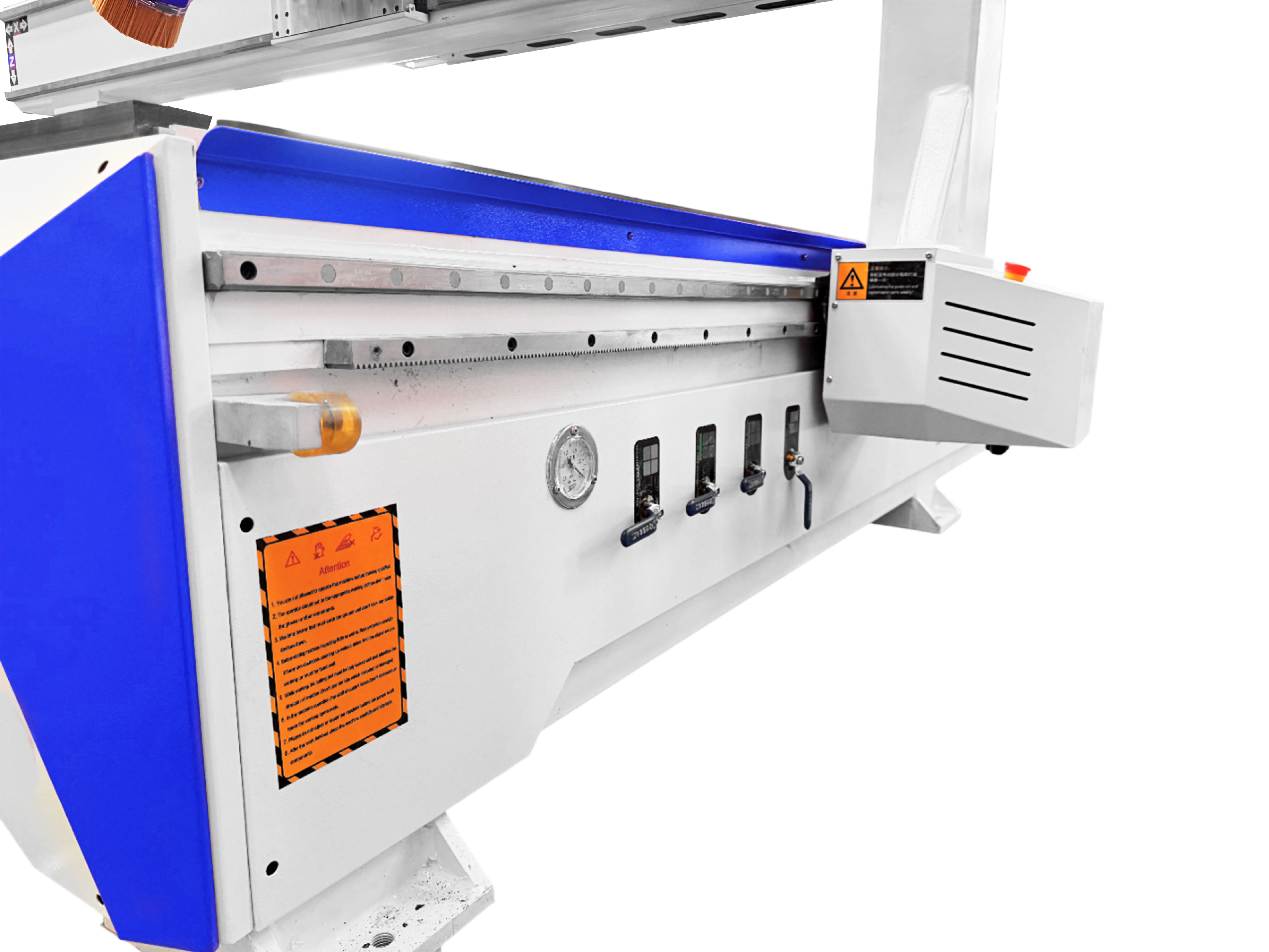 Станок оснащен высокоточными линейными направляющими и подшипниками 25 мм и косозубыми рейками и шестернями от компании KOTEC.