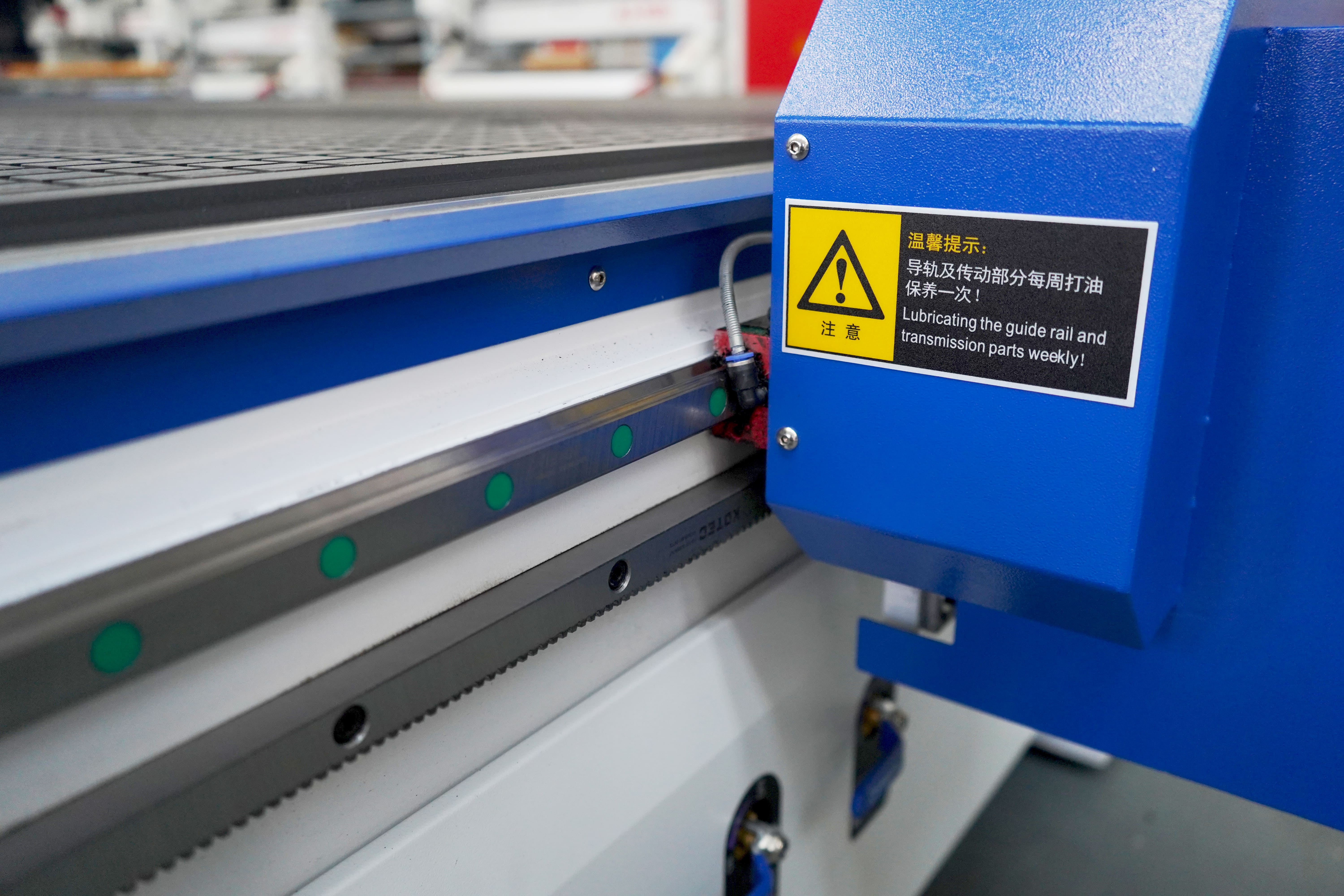 Ось X / Y перемещаются на линейных направляющих с помощью передачи косозубая рейка-шестерня, которые обладают большой несущей способностью и высокой точностью, а также более долговечны, чем традиционные цилиндрические шестерни.