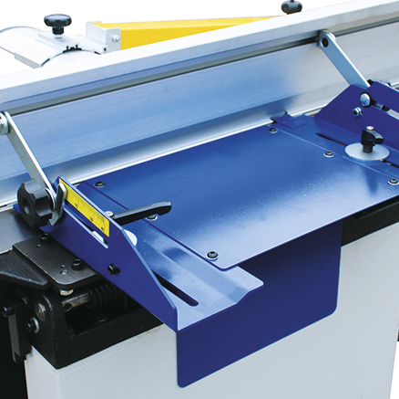 Столы откидываются поочередно, и базируются на специальных упорах, которые предотвращают повреждение станины станка. Принимающий фуговальный стол снабжен механизмом стопорения.