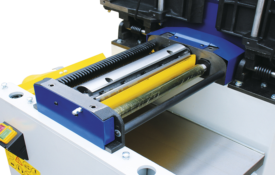 Трехножевой строгальный вал, обеспечивает идеальное качество строгания, снабжен когтевой защитой и металлическим подающим валом. Строгальные и падающие валы закреплены в массивном стальном корпусе, который эффективно гасит ударные нагрузки, возникающие в процессе работы.