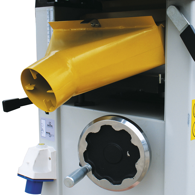 Столы откидываются поочередно, и базируются на специальных упорах, которые предотвращают повреждение станины станка. Принимающий фуговальный стол снабжен механизмом стопорения.