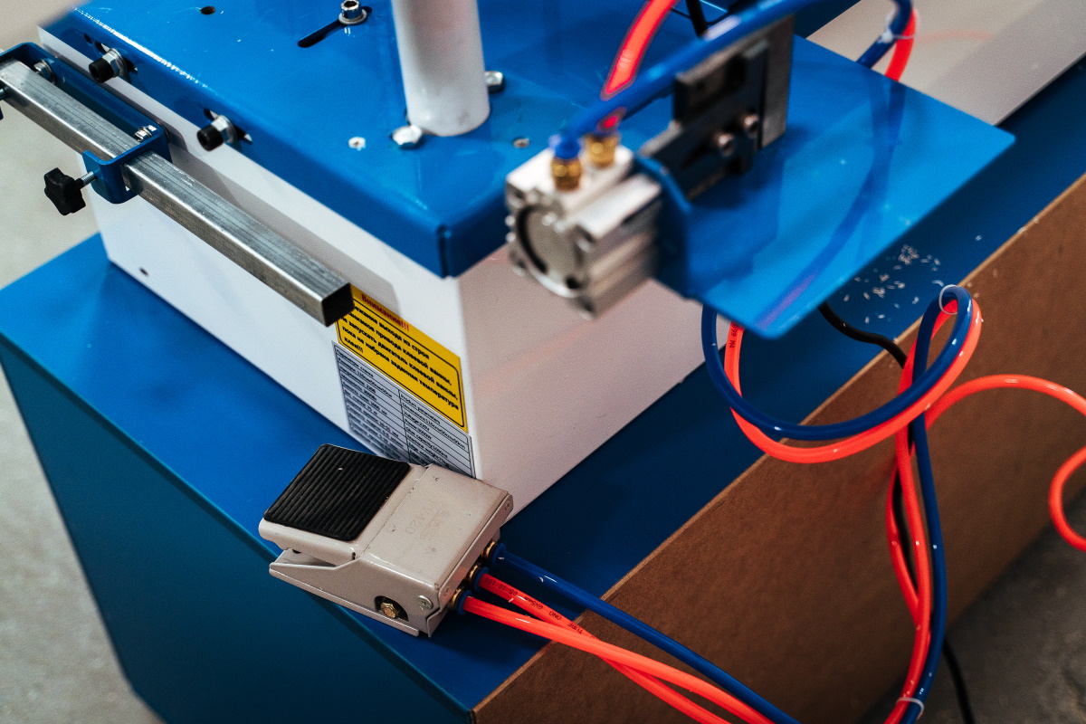 • - Гильотина для предварительной резки толстого кромочного материала из ПВХ или АBS, с макс сечением 2x40 мм.