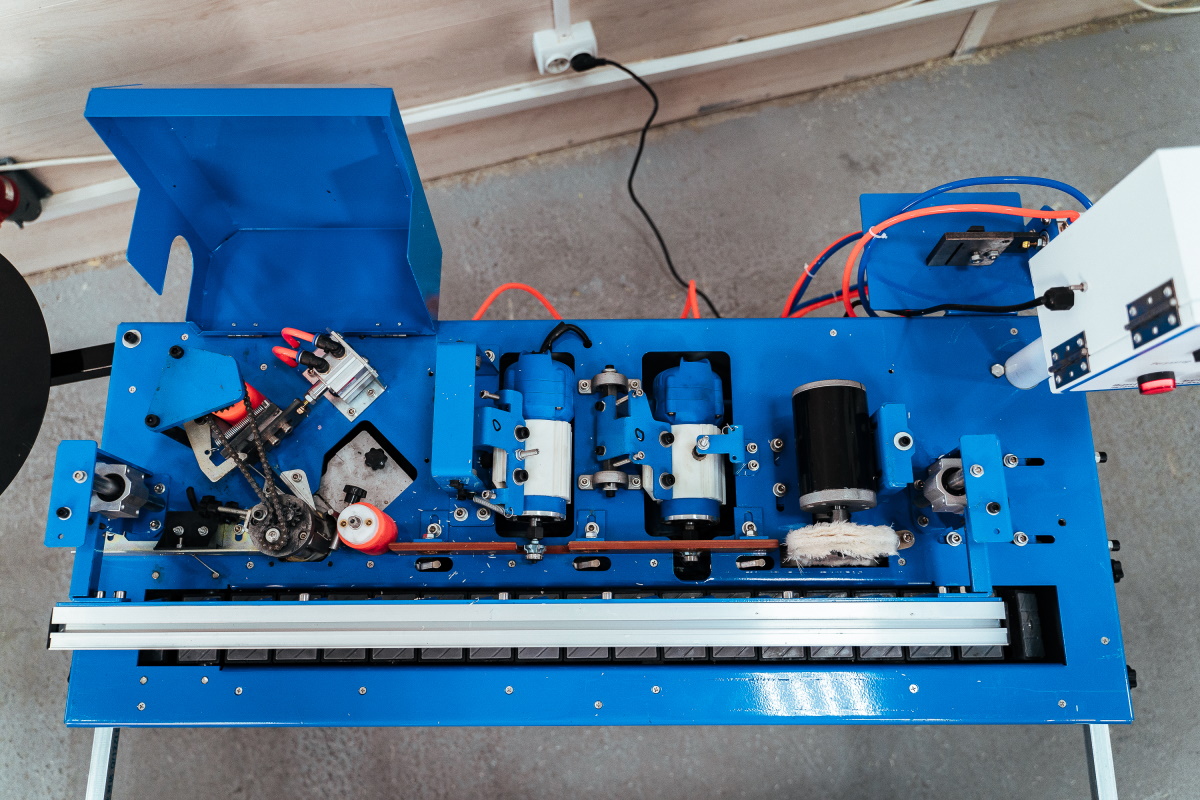 Приклеивание ведется при автоматической подаче заготовки.