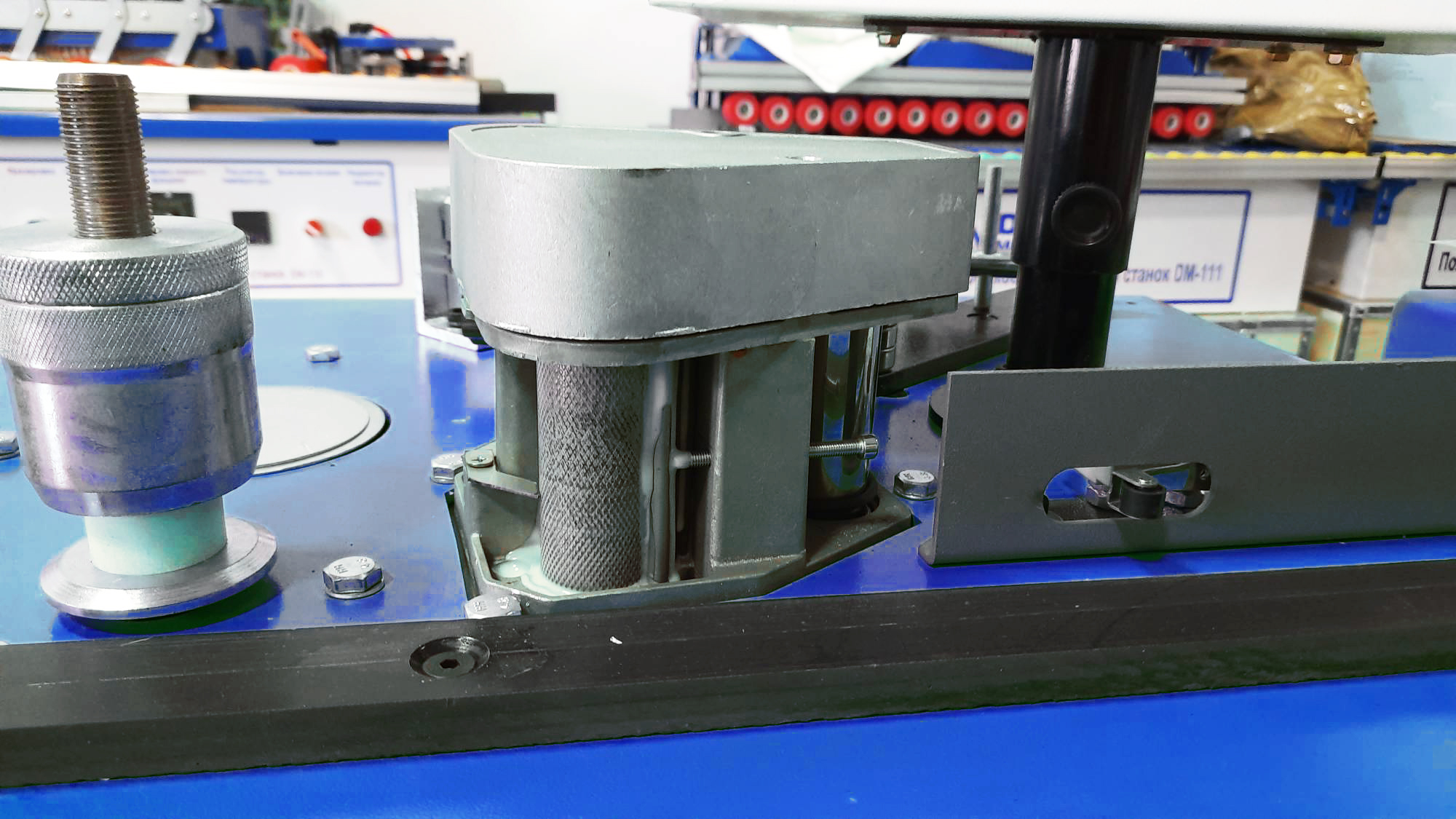 Не требуется настройка на толщину кромки. Кромочный канал состоит из четырех роликов. Производиться регулировка ограничительной планки только на ширину кромочного материала.