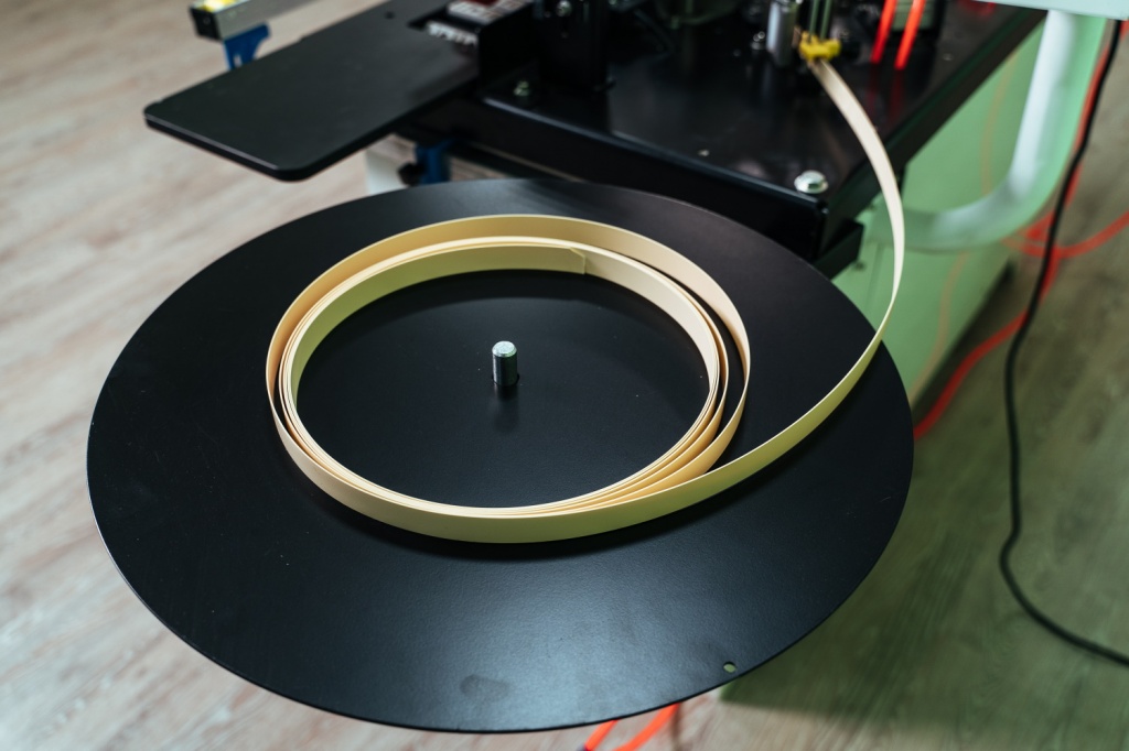 Для размещения и автоматической подачи рулонного кромочного материала.