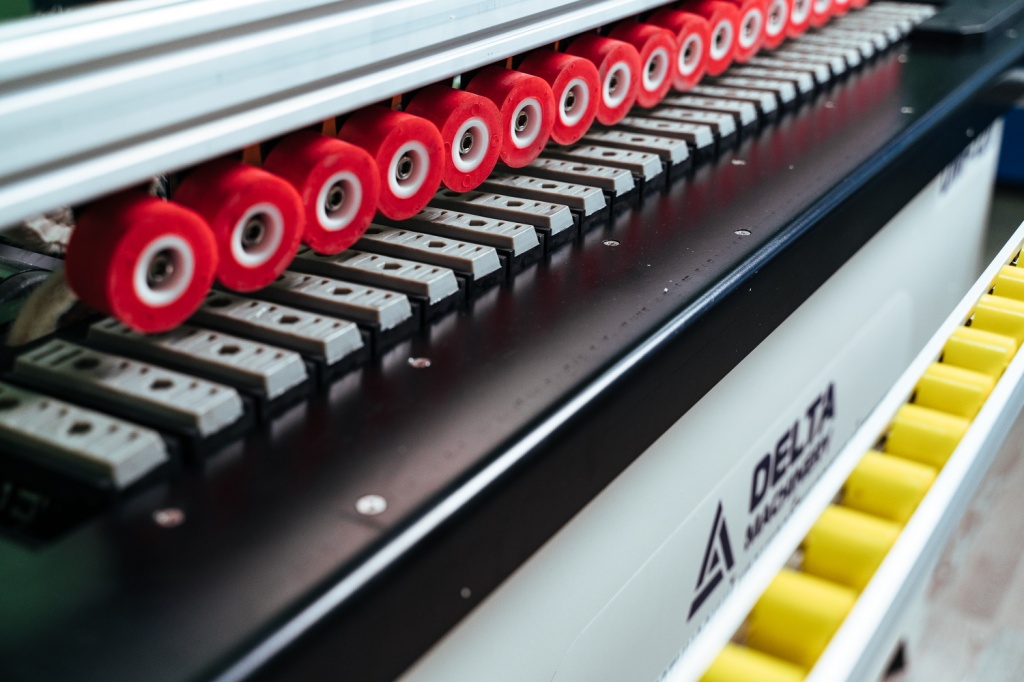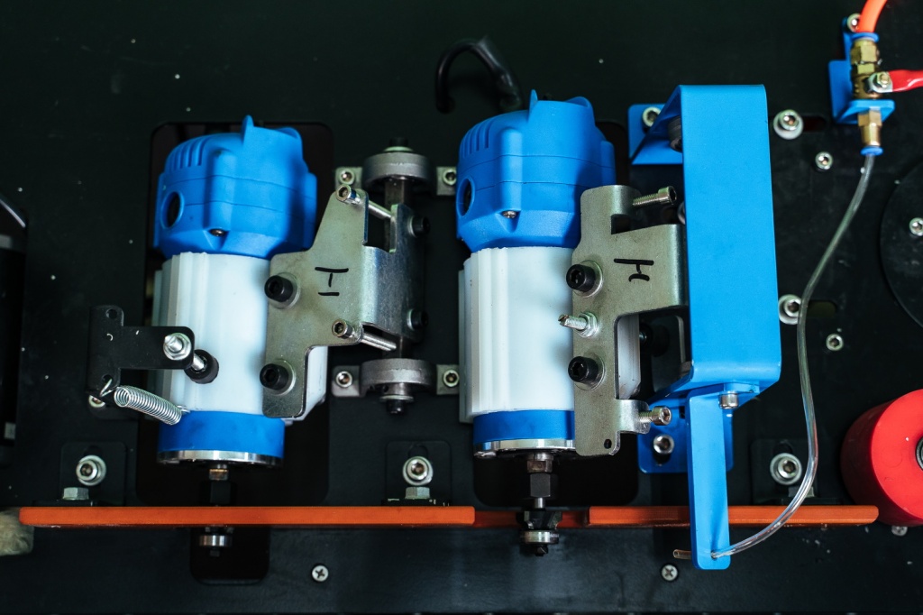 Клеевые валы позволяют наносить клей как на заготовку, так и на кромку для лучшего качества склеивания.
