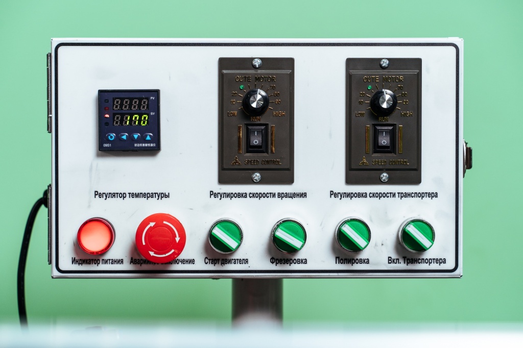 Регулировки температуры клеевой ванны и скорости вращения роликов и подачи кромки расположены на центральной панели управления.