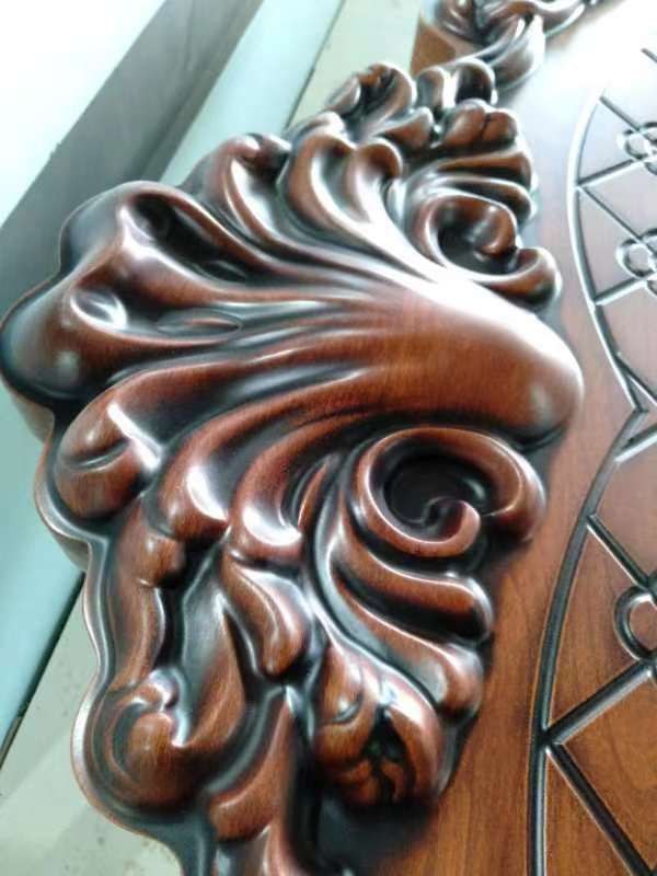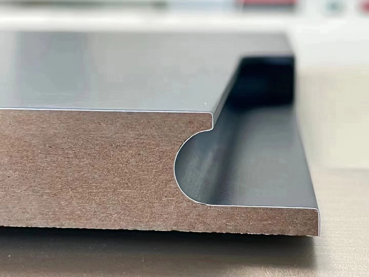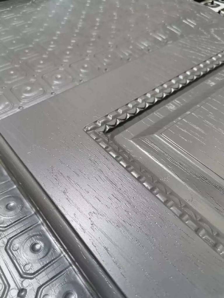 На прессе возможно использование технологии отделки с использованием пленок c термопереводным рисунком, что значительно расширяет возможности дизайна (например, позволяет получить достоверную имитацию царговой конструкции с филенкой без применения специально напечатанных пленок.