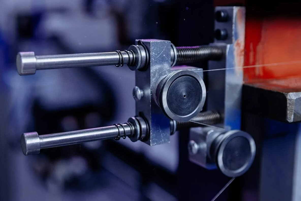 Данное устройство позволяет компенсировать удлинение проволоки во время работы и держать натяжку в установленных пределах, что позволяет добиваться хороших показателей точности до 12 мкм.
