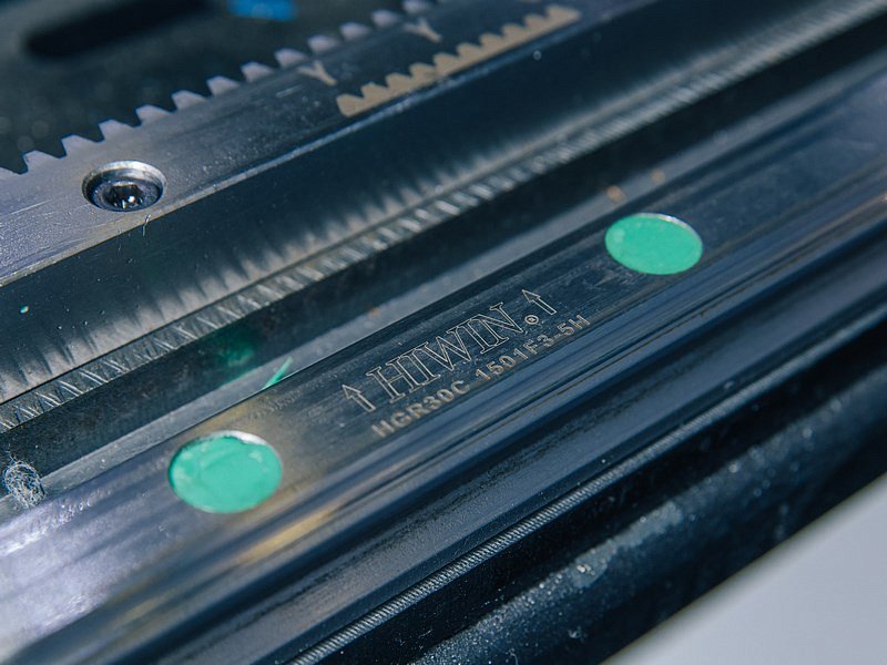 Станок по всем осям оснащен квадратными линейными направляющими и каретками компании «HIWIN» (Тайвань) сечением 30мм. За счет повышенной устойчивости и жесткости обеспечивают высокую точность перемещения портала по осям Х, Y, Z. Достигается высокая точность обработки и долговечность работы станка без потери точностных параметров.