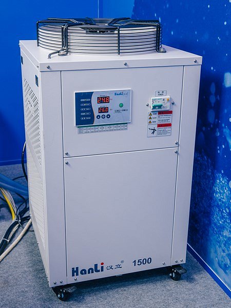 Этот чиллер имеет большую мощность, что позволяет непрерывно охлаждать лазерную систему. Регулировка температуры осуществляется в автоматическом режиме.
