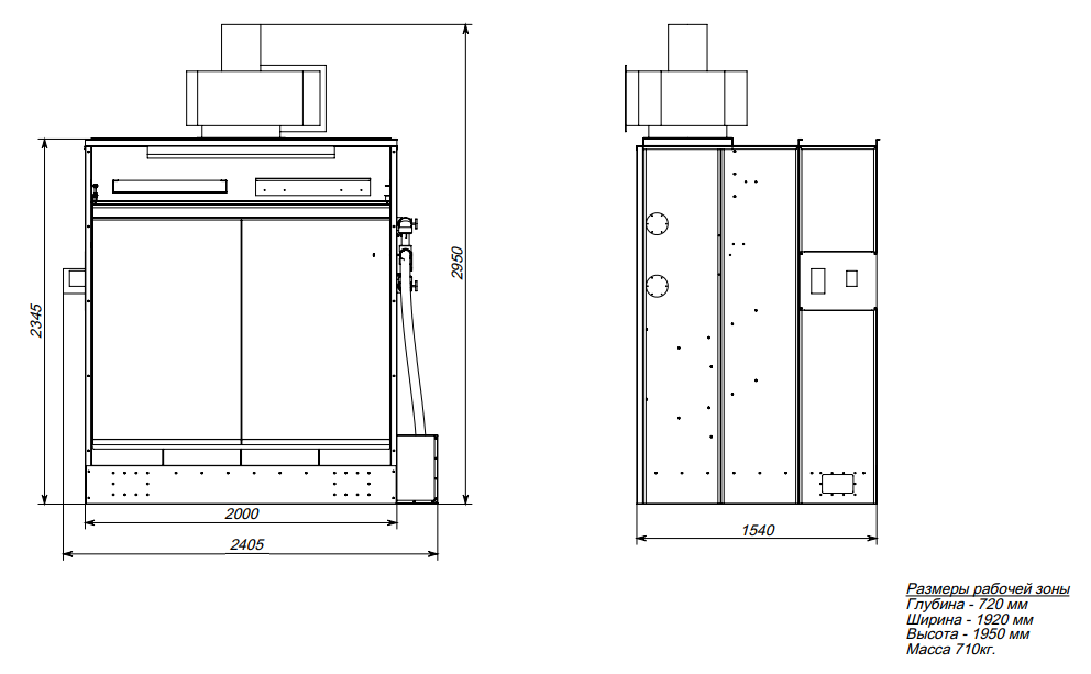 Размер корпуса с вентилятором ДхГхВ: 2440х1550х2930 мм