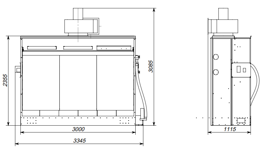 Размер корпуса с вентилятором ДхГхВ: 3440х1050х3130 мм