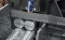 Непосредственно процесс резки осуществляется пильным полотном (ленточная пила), которая сварена в кольцо и установлена на пильной раме, методом натяжения на шкивы. Пильная рама опускается под собственным весом, а регулируемый гидравлический цилиндр (гидроразгрузка), позволяет регулировать скорость опускания пильной рамы, в зависимости от установленной заготовки и режимов пиления.