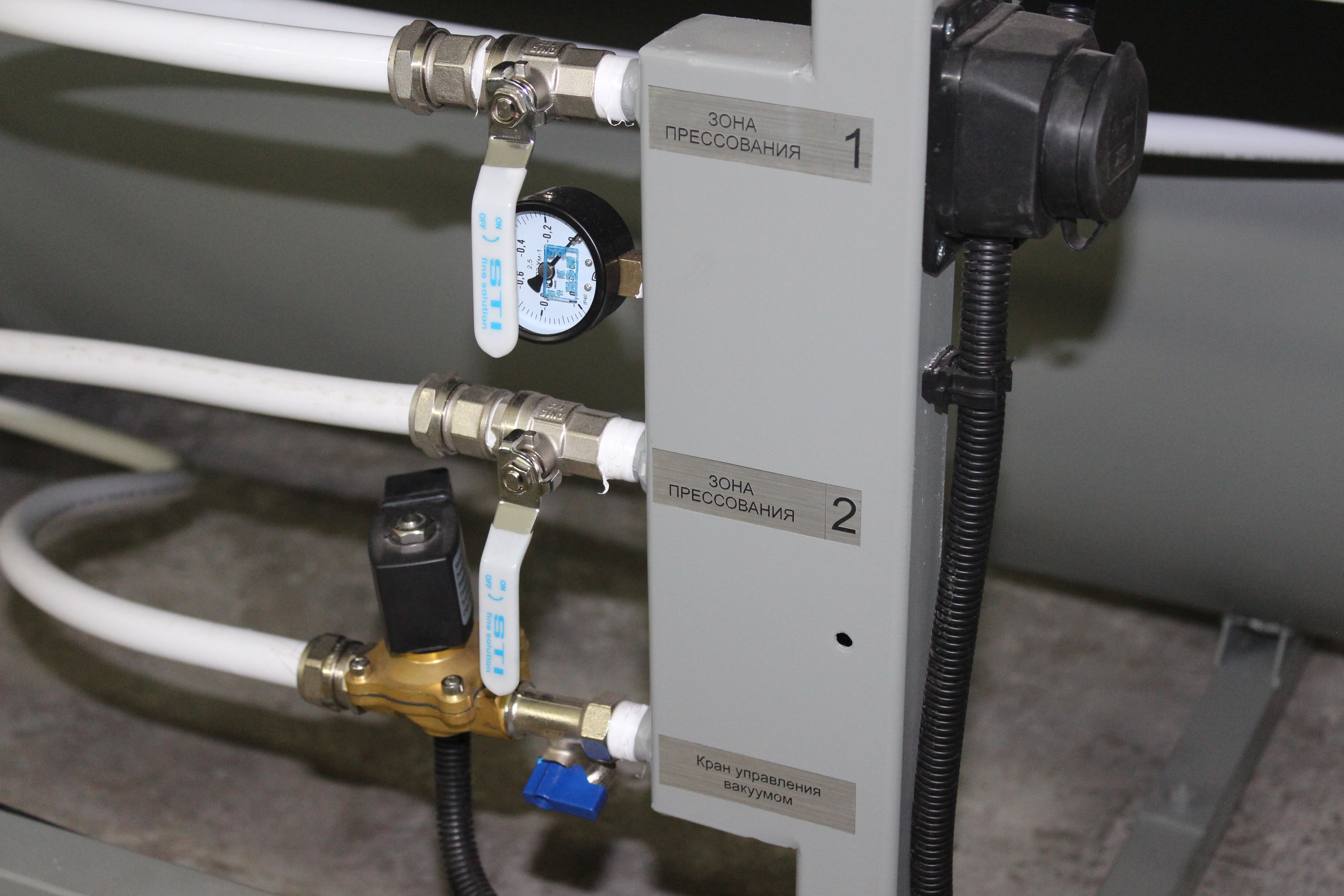 Электрошкаф и пульт управления прессом может быть оснащен различными микропроцессорными контроллерами стабилизации и регуляции вакуума и температуры по желанию заказчика. Режим нагрева происходит автоматически при заданной оператором температуре.