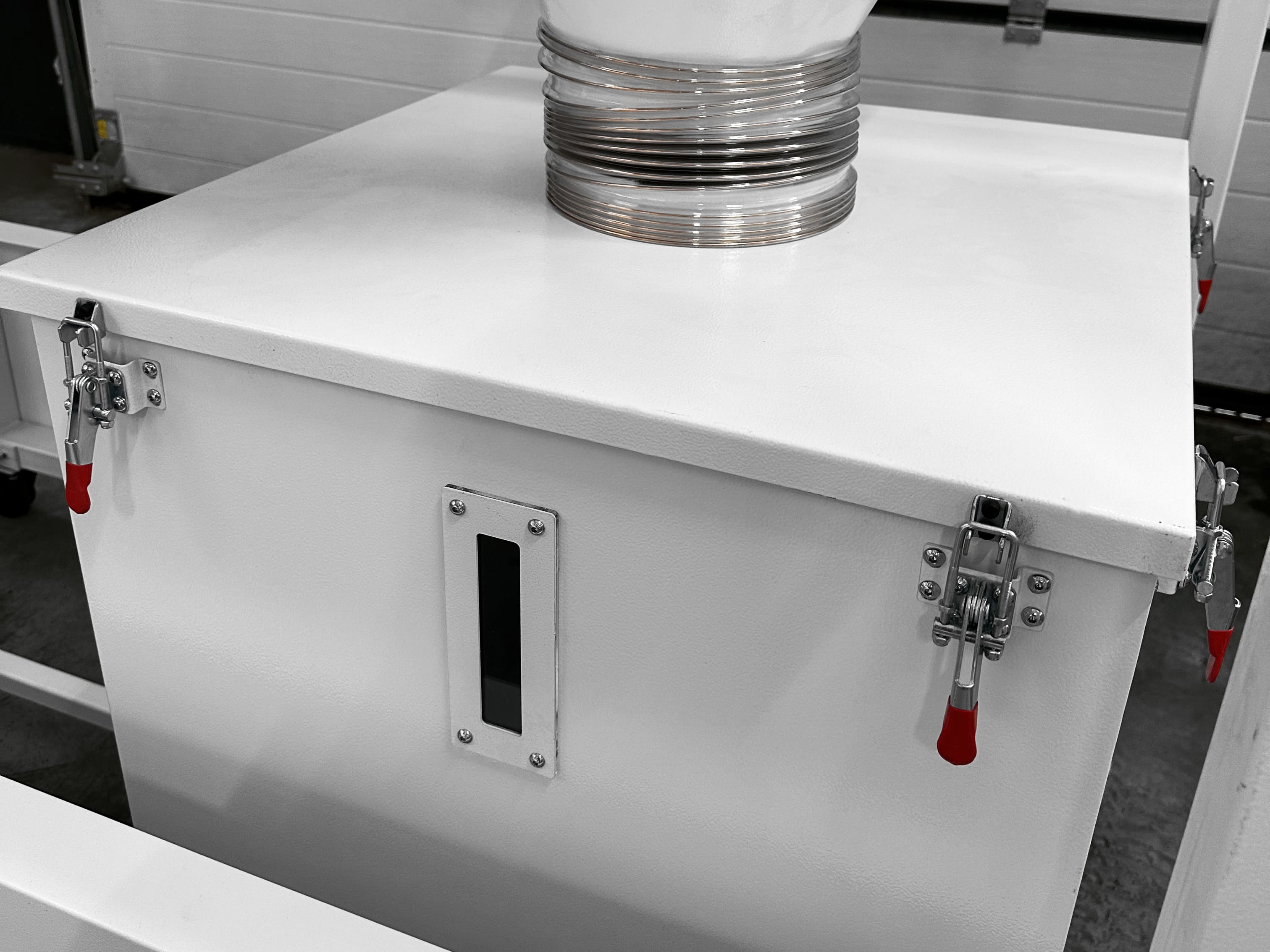 - Отсек с кассетным фильтром оснащенный импульсной пневмо продувкой