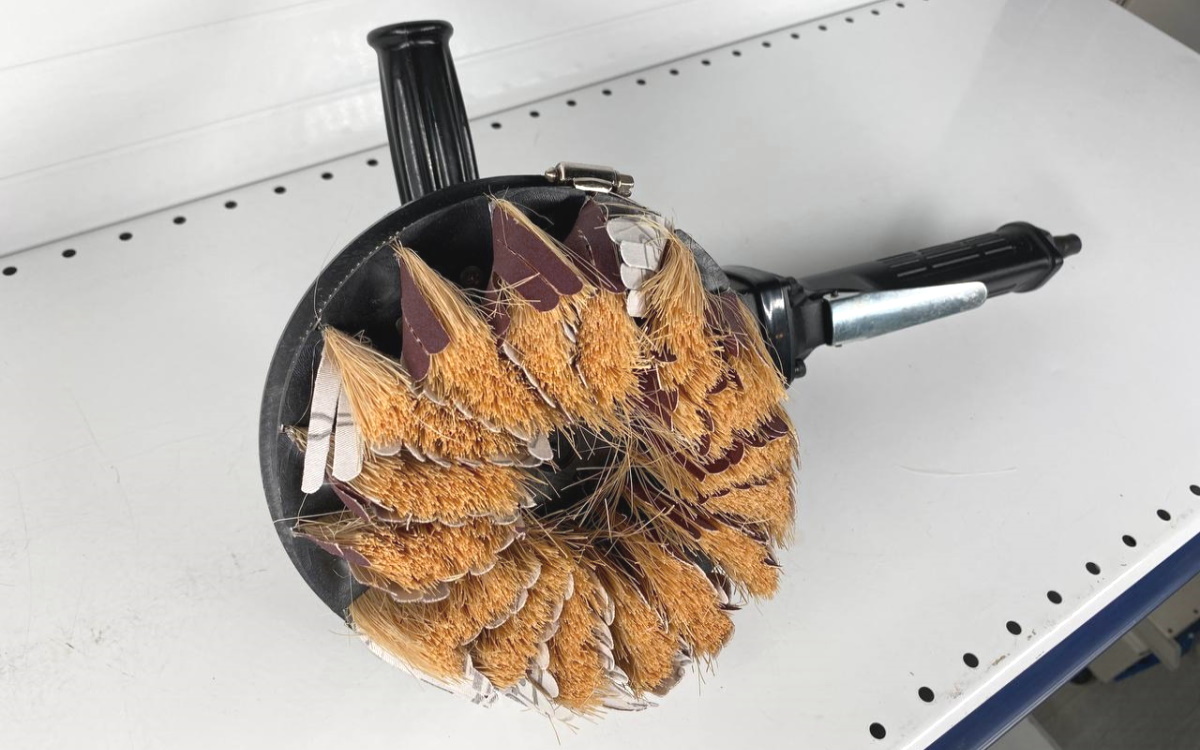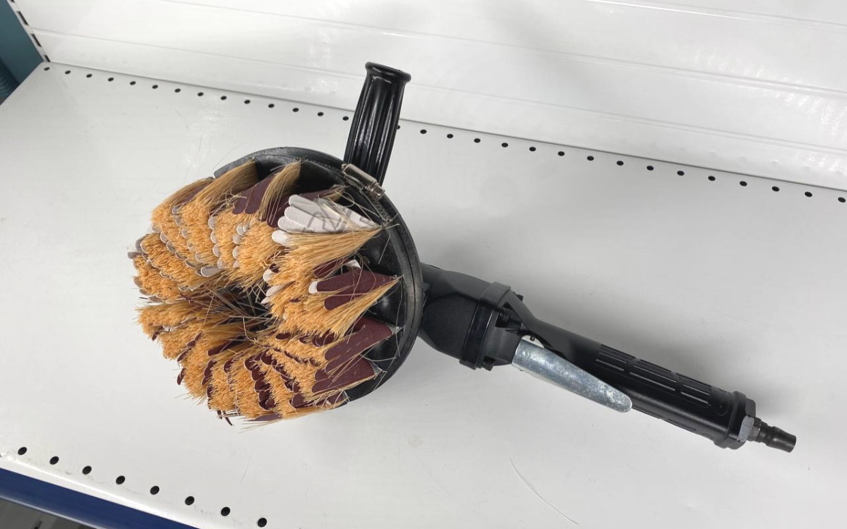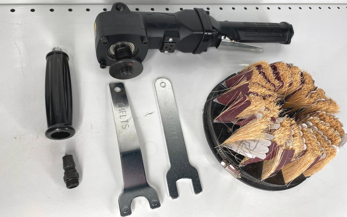 Укомплектовано шлифовальными щетками и абразивными лепестками.
