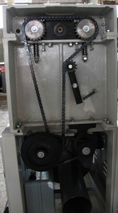 Привод подающего и вытяжного вала выполнен через цепную передачу.