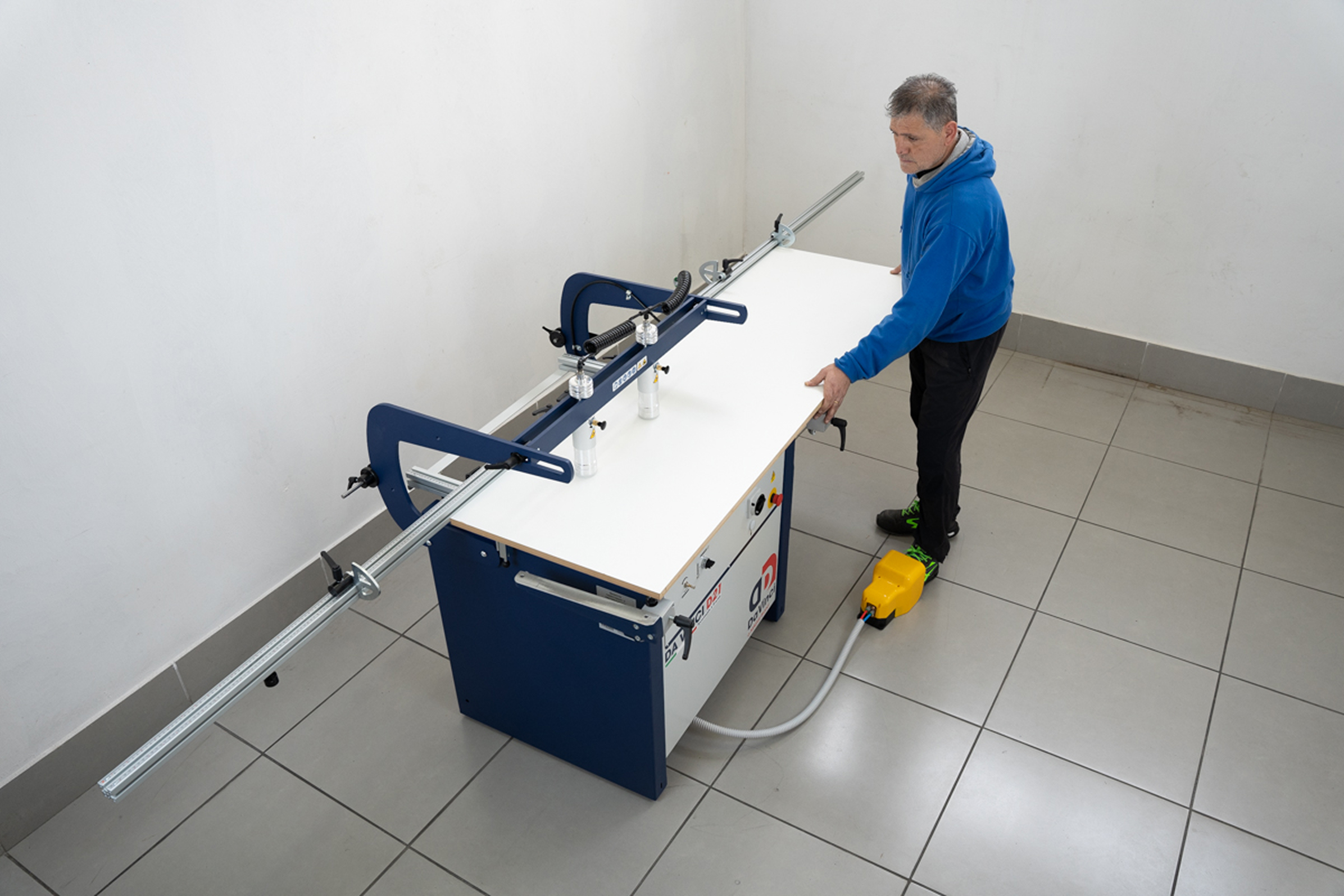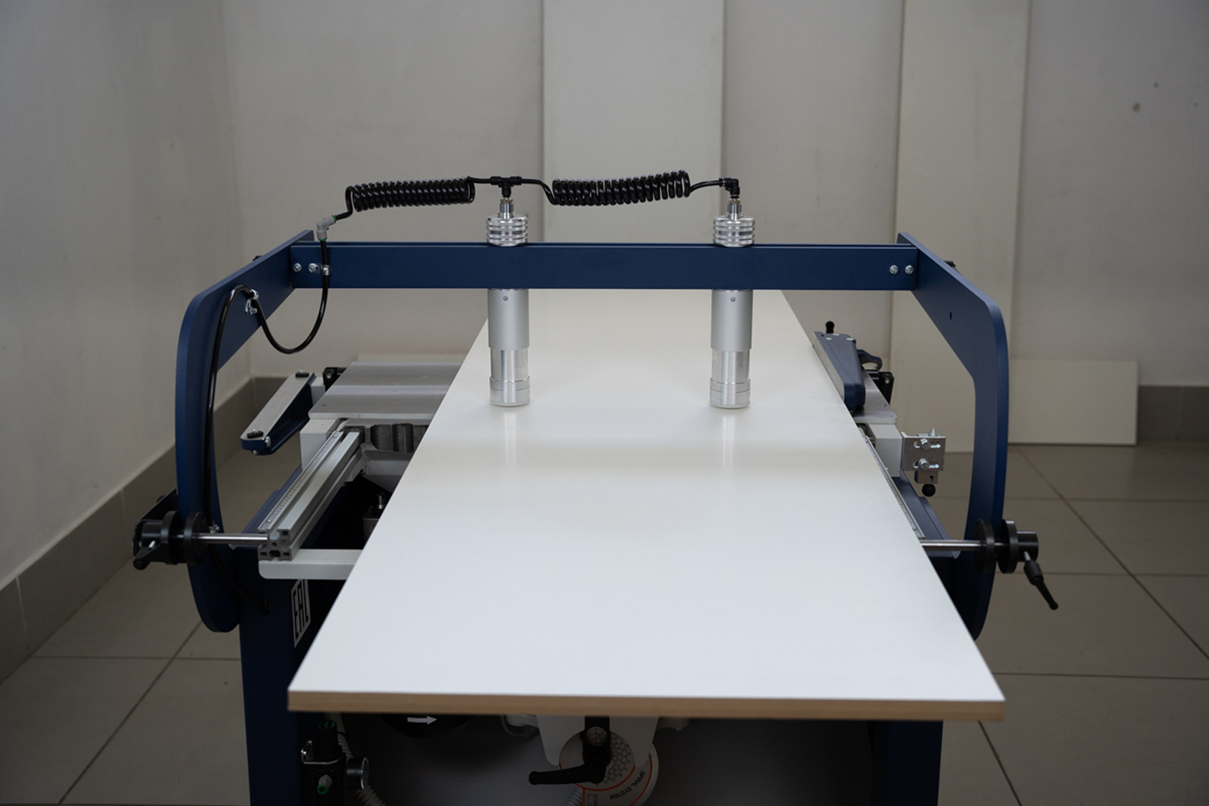 Пневматические прижимы для быстрого фиксирования заготовки исключают необходимость ручной регулировки.