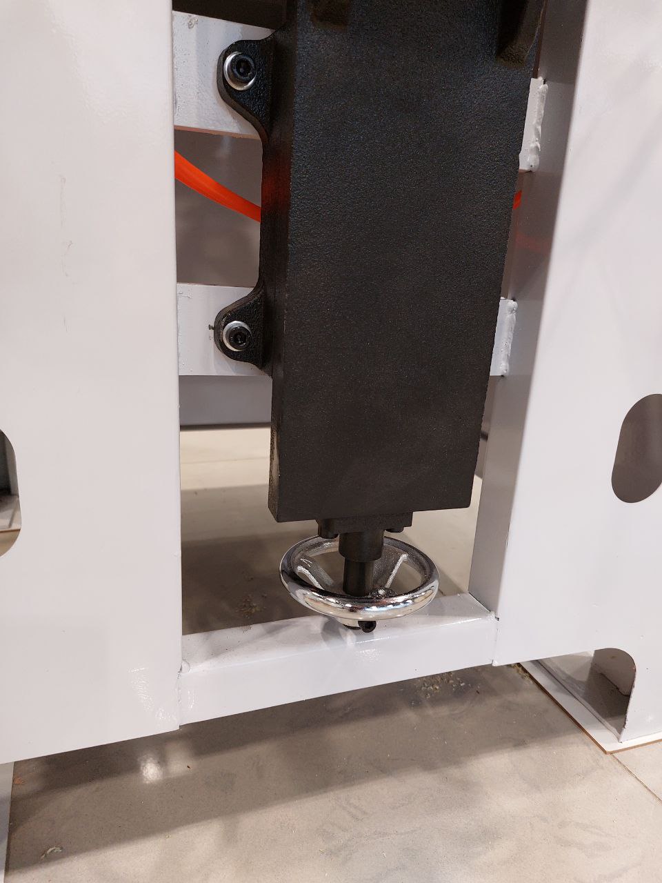Регулировка высоты горизонтального сверления осуществляется посредством механического маховика расположенного в нижней части перемещающего устройства.