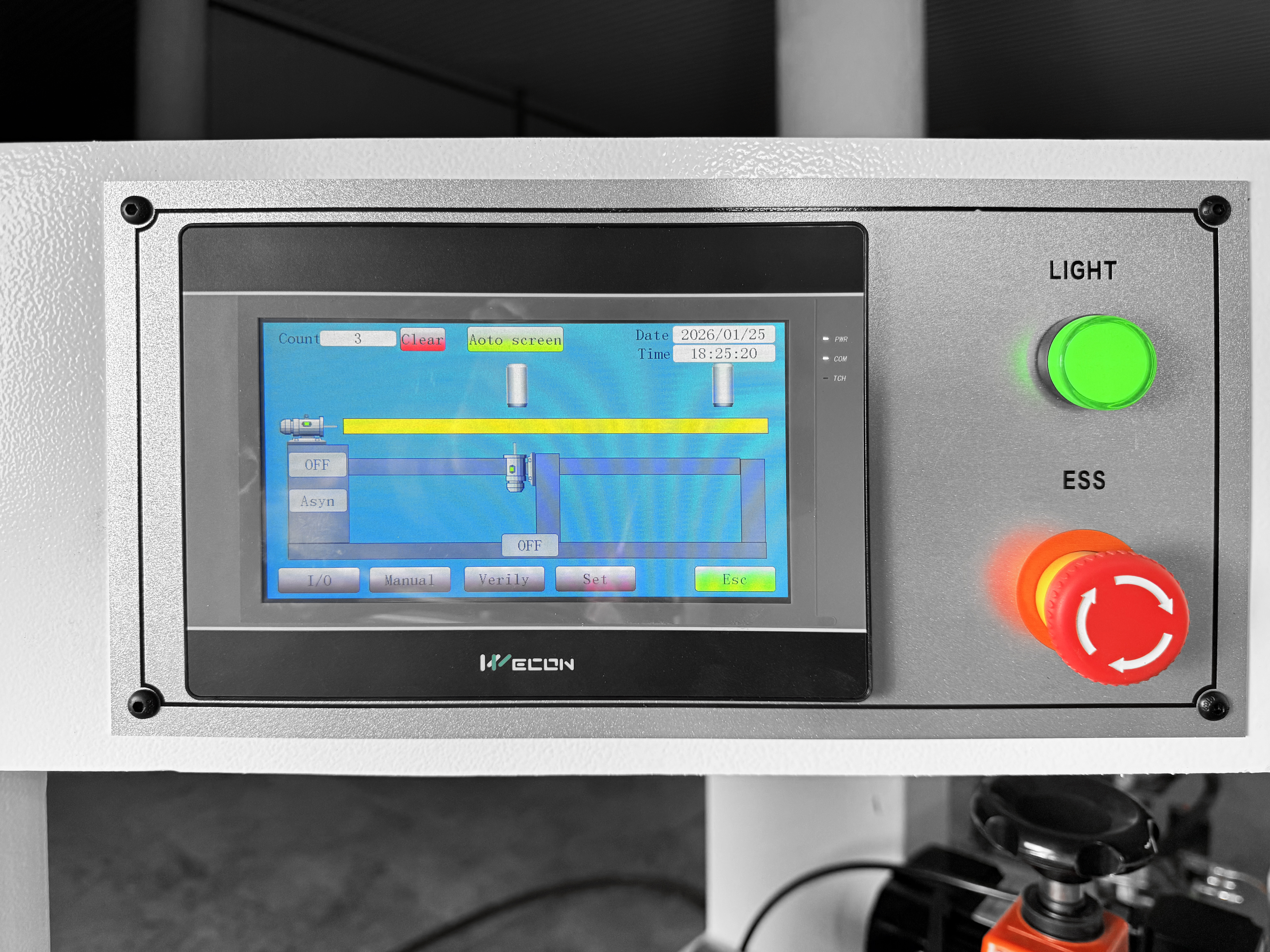 Фиксация траверсы на заданном размере производится с помощью механического тормоза, активируемого переключателем расположенным рядом с электронным табло