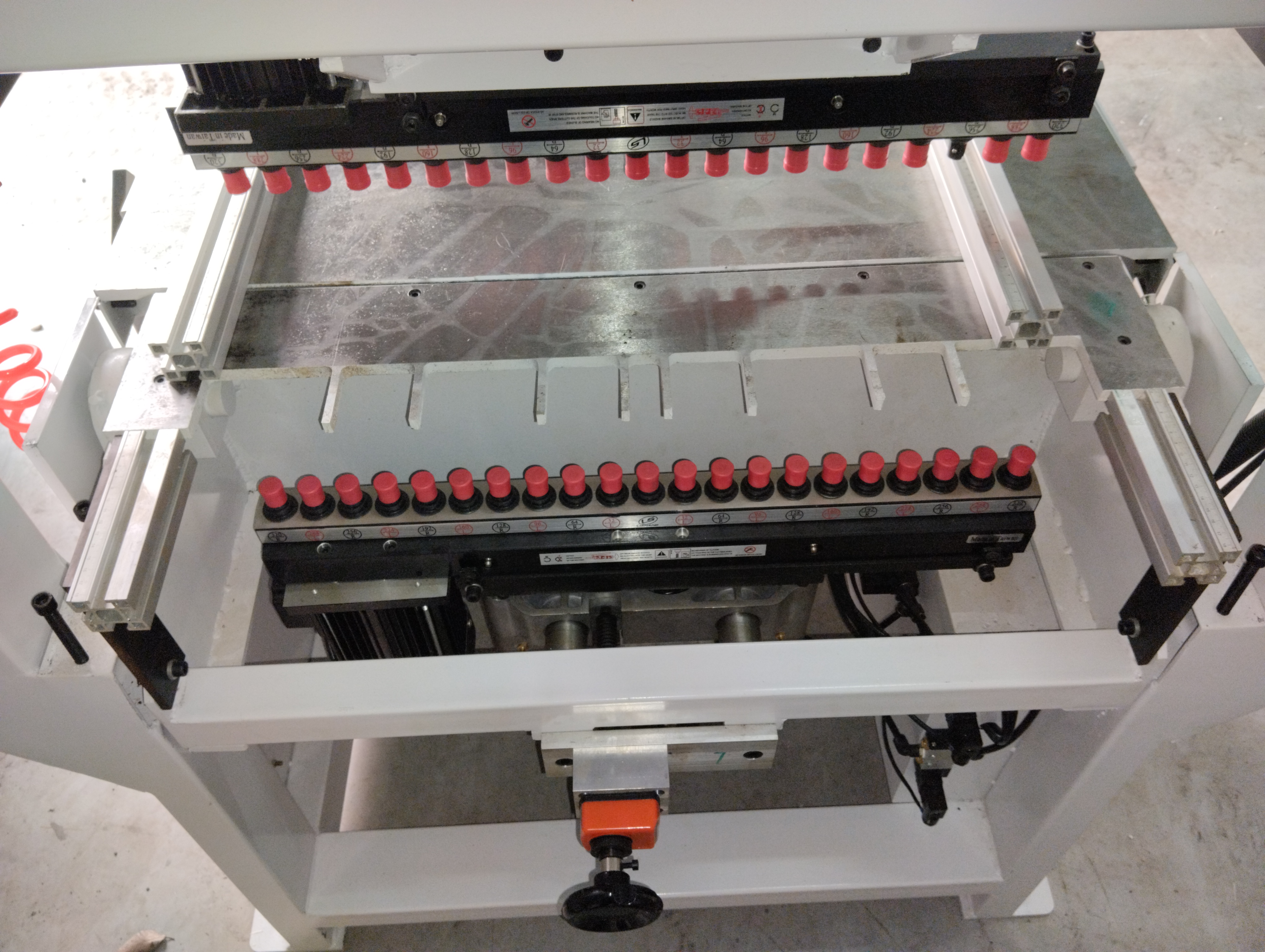 Два сверлильных модуля имеют 21 шпиндель с шагом 32 мм, способны сверлить вертикально, горизонтально и под углом, одновременно, либо последовательно