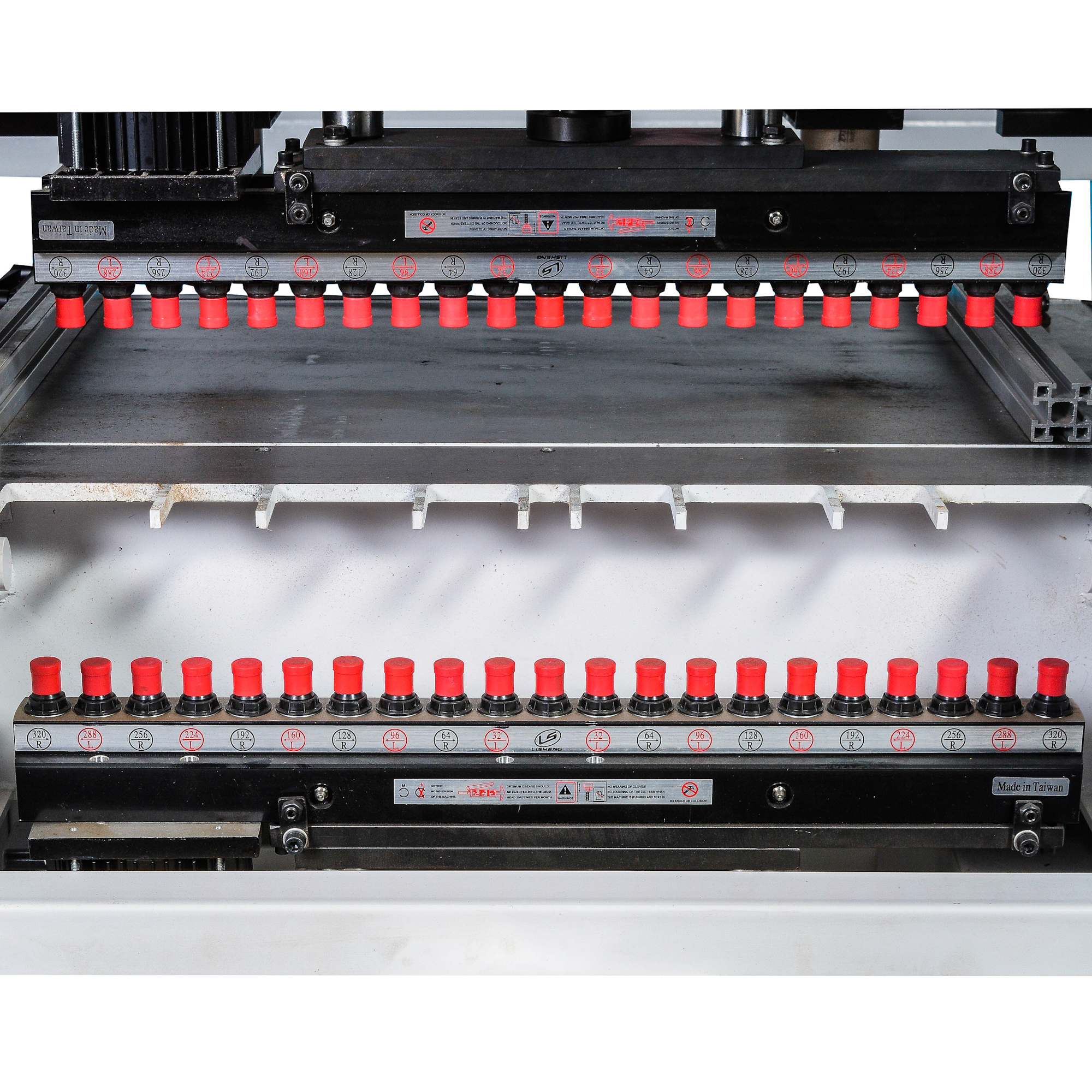 • Два сверлильных модуля имеют 21 шпиндель с шагом 32 мм, способны сверлить вертикально, горизонтально и под углом, одновременно, либо последовательно