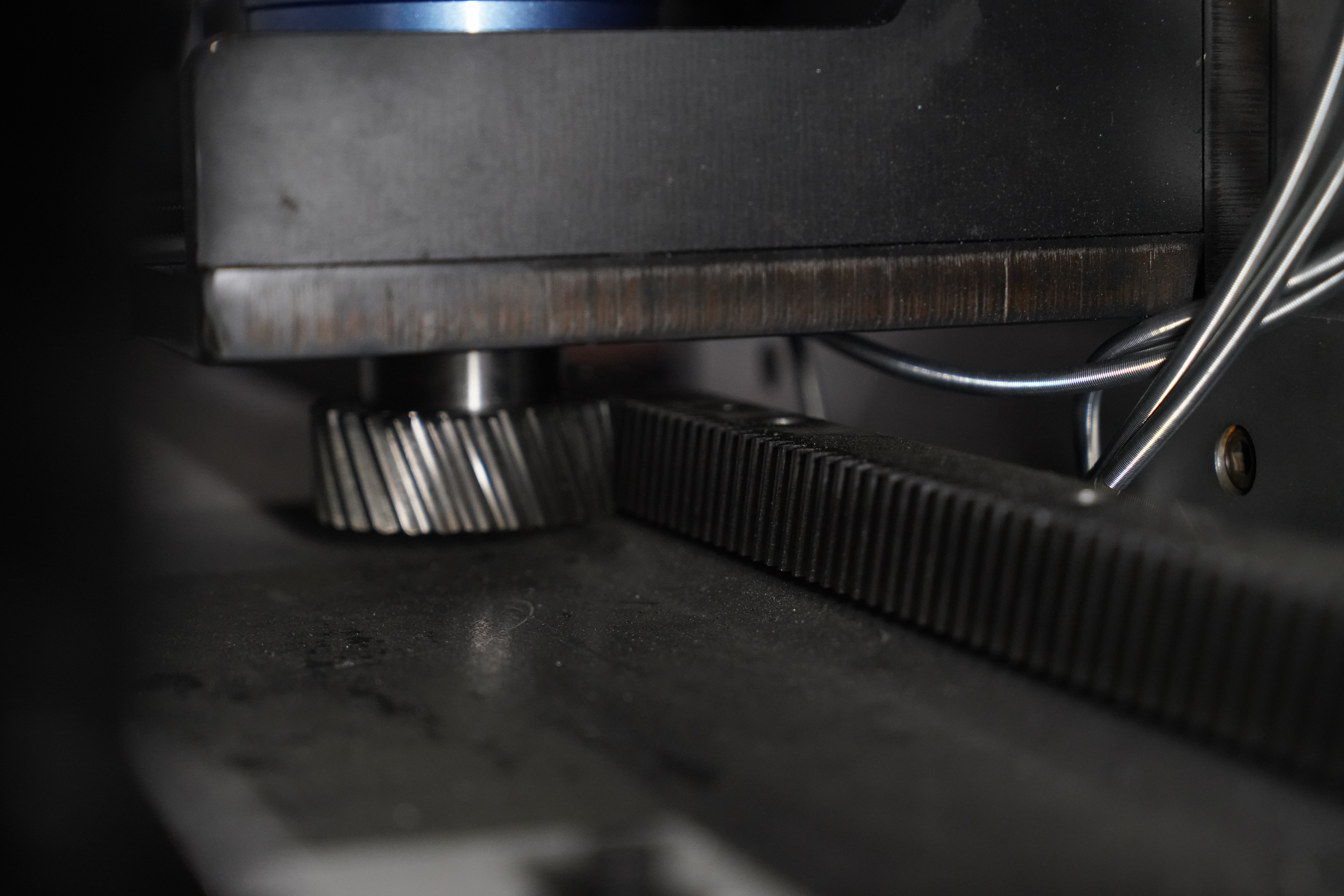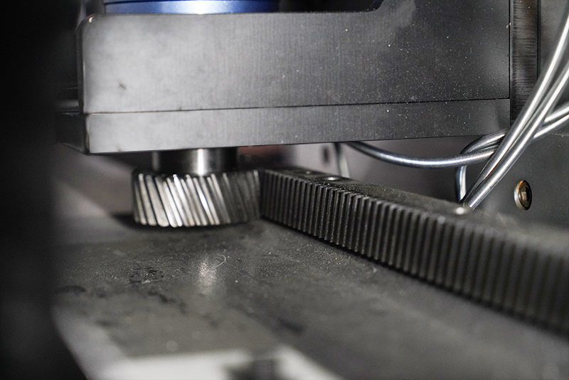 Надежная конструкция с качественными направляющими и линейными подшипниками перемещения, обеспечивает высокую скорость «перехвата» детали, уменьшая время цикла обработки. Приводной механизм – косозубая рейка.