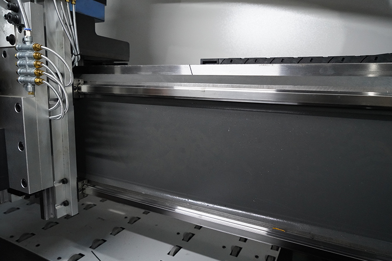 Программно-управляемый боковой упор с обрезиненными роликами, для надежного и точного позиционирования детали.