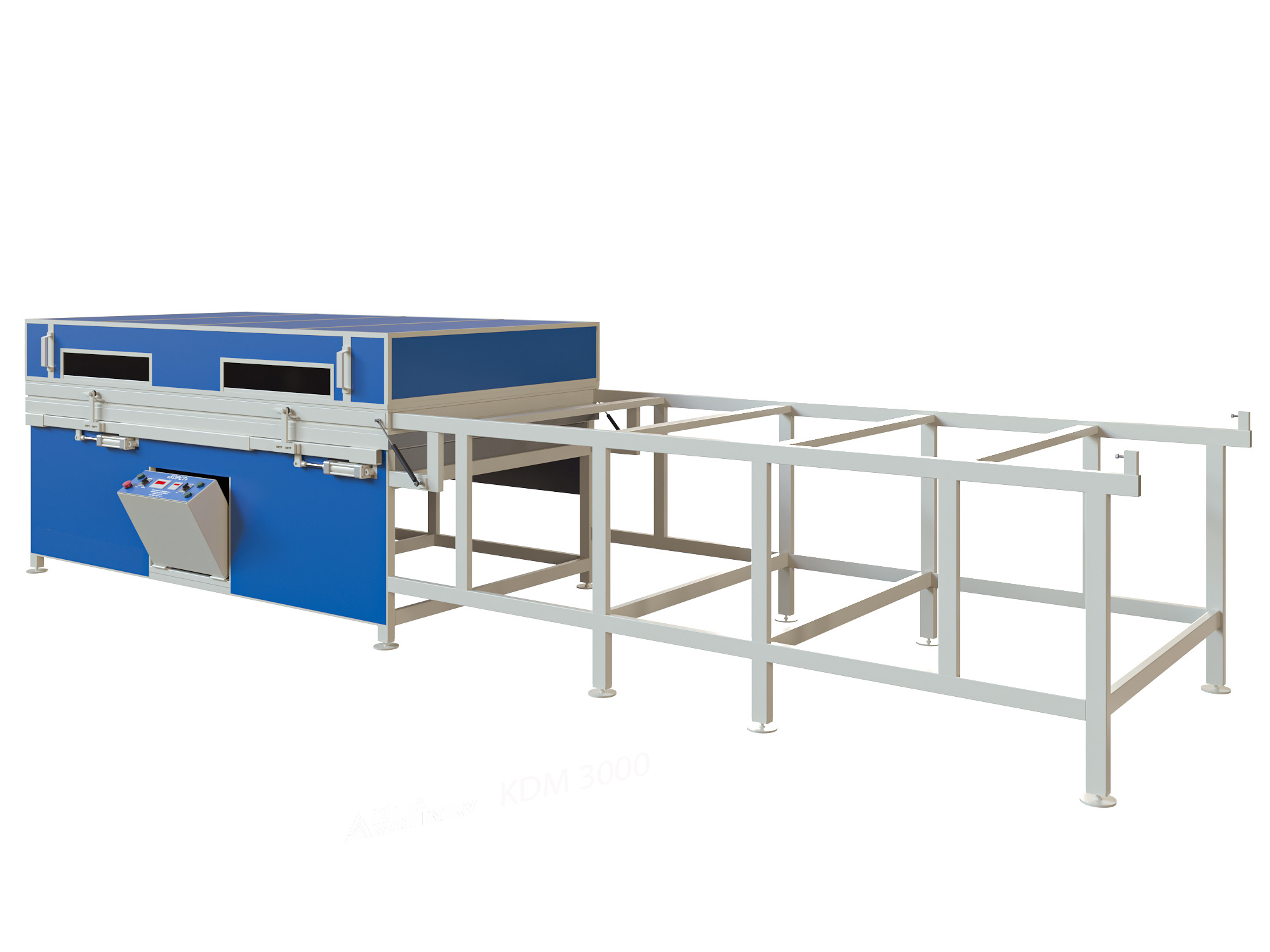 Вакуумный пресс KDM-3000 ОТК в модификации с откатным термомодулем отличается от других прессов, производимых нами, тем, что термомодуль в данном вакуумном прессе откатывается в сторону (в "зону покоя"), предоставляя полный доступ к рабочему столу со всех сторон.